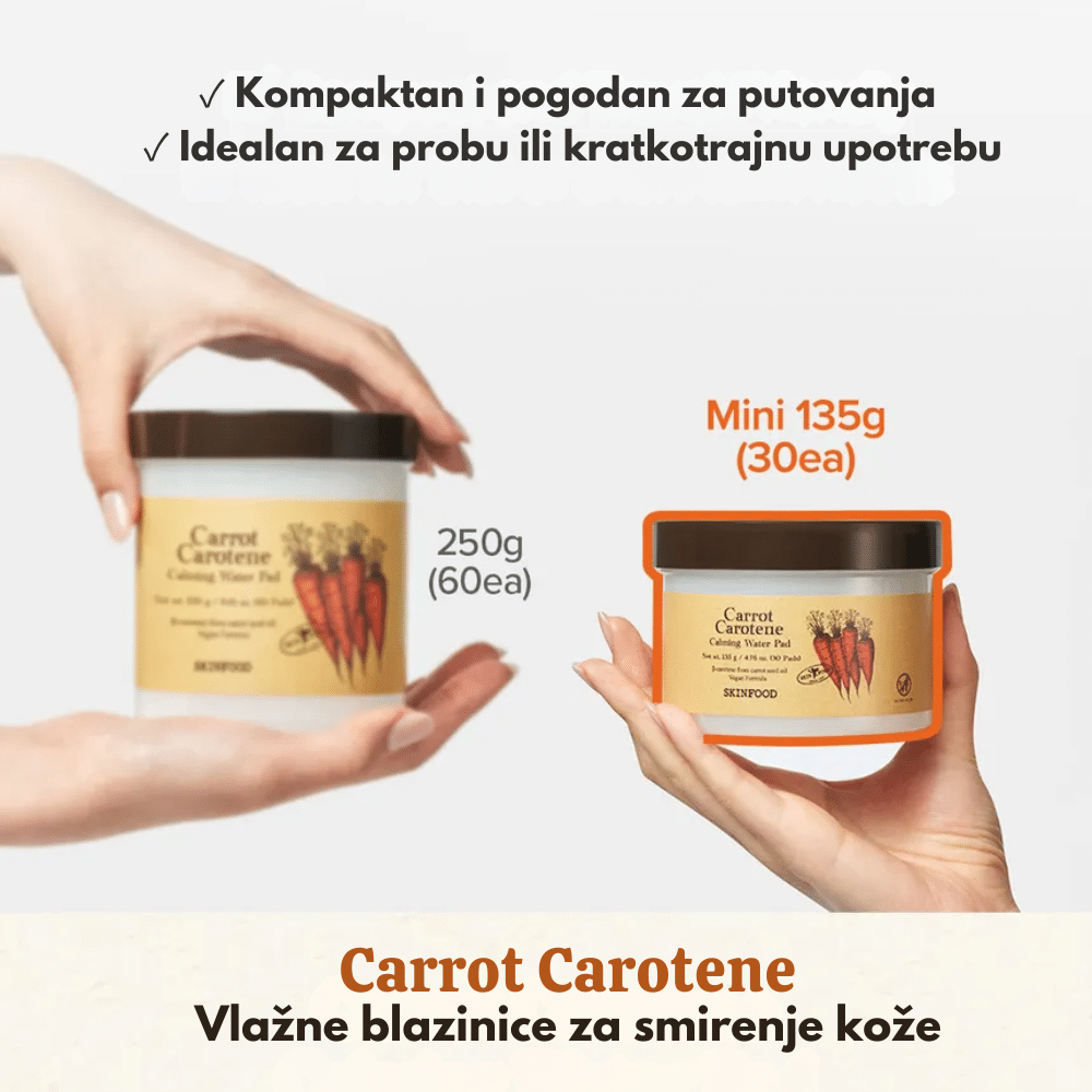 SKINFOOD Carrot Carotene Calming Water Pad umiruje, hidrira i osvežava kožu uz beta-karoten iz šargarepe, pantenol i alantoin.