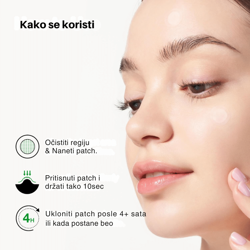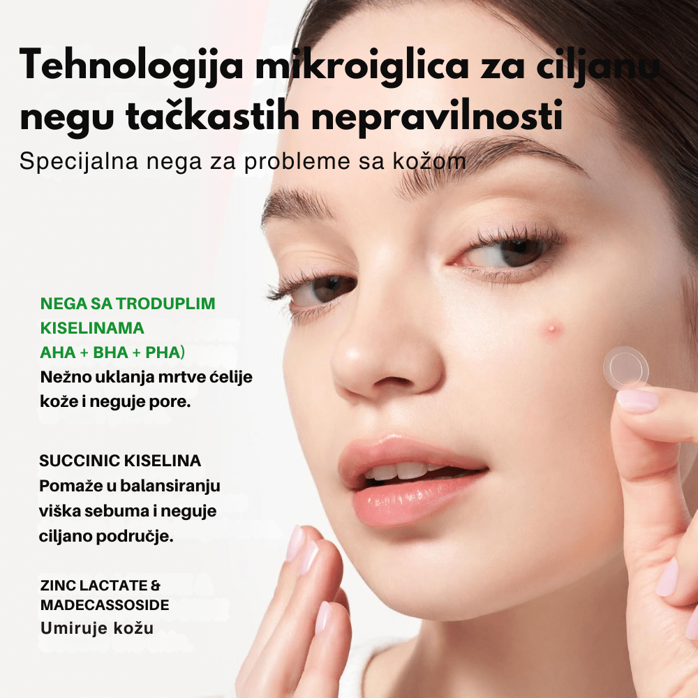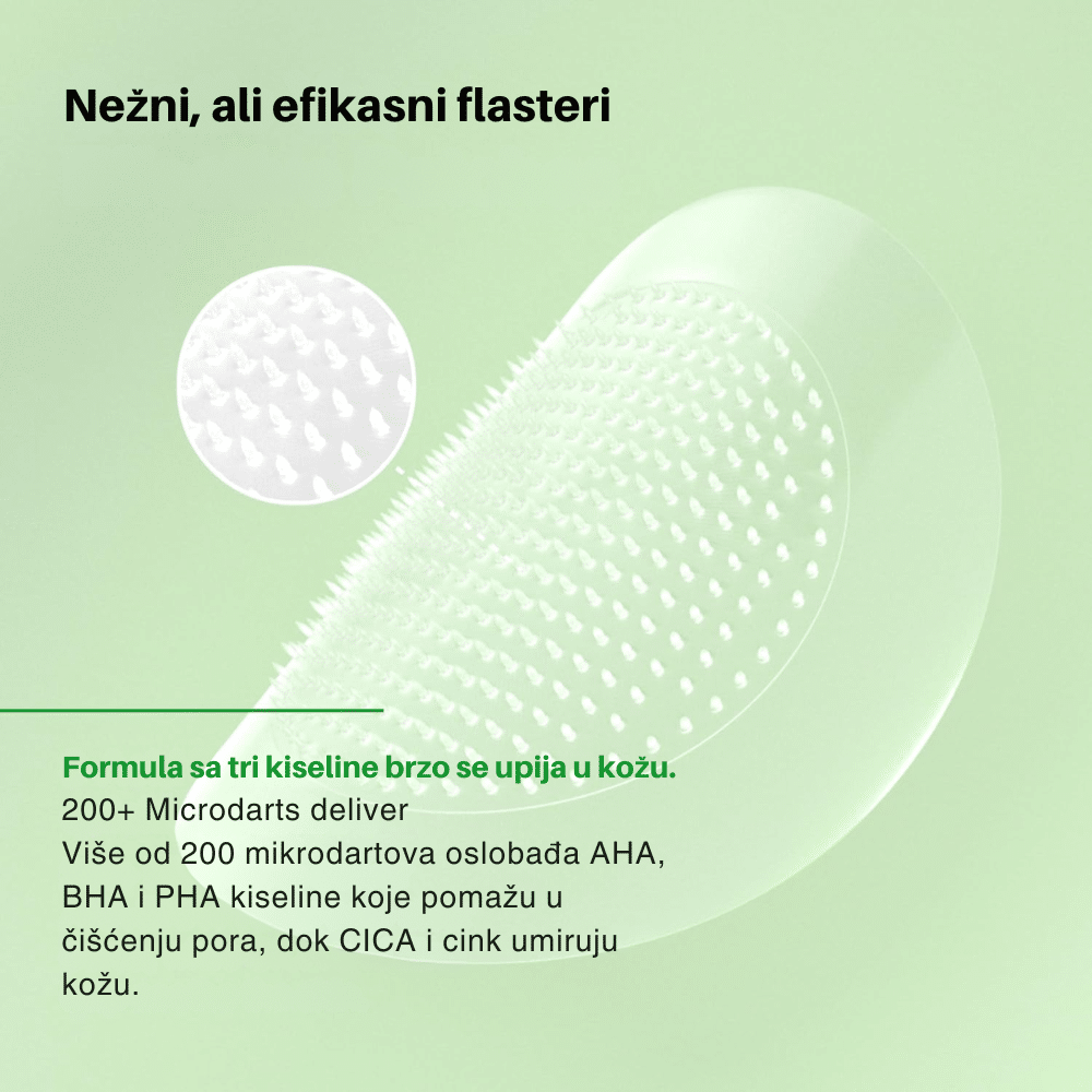 Slim-fit patch sa mikrodart vrhovima i trostrukim kiselinama za brzo smirivanje bubuljica, pročišćavanje pora i umirenje kože preko noći.
