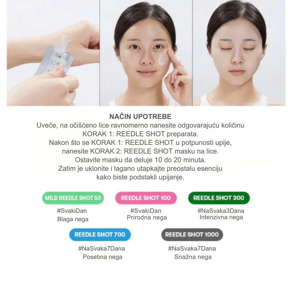 Dvostepena maska sa Reedle tehnologijom i kolagenom koja hidrira, zaglađuje i poboljšava elastičnost kože.