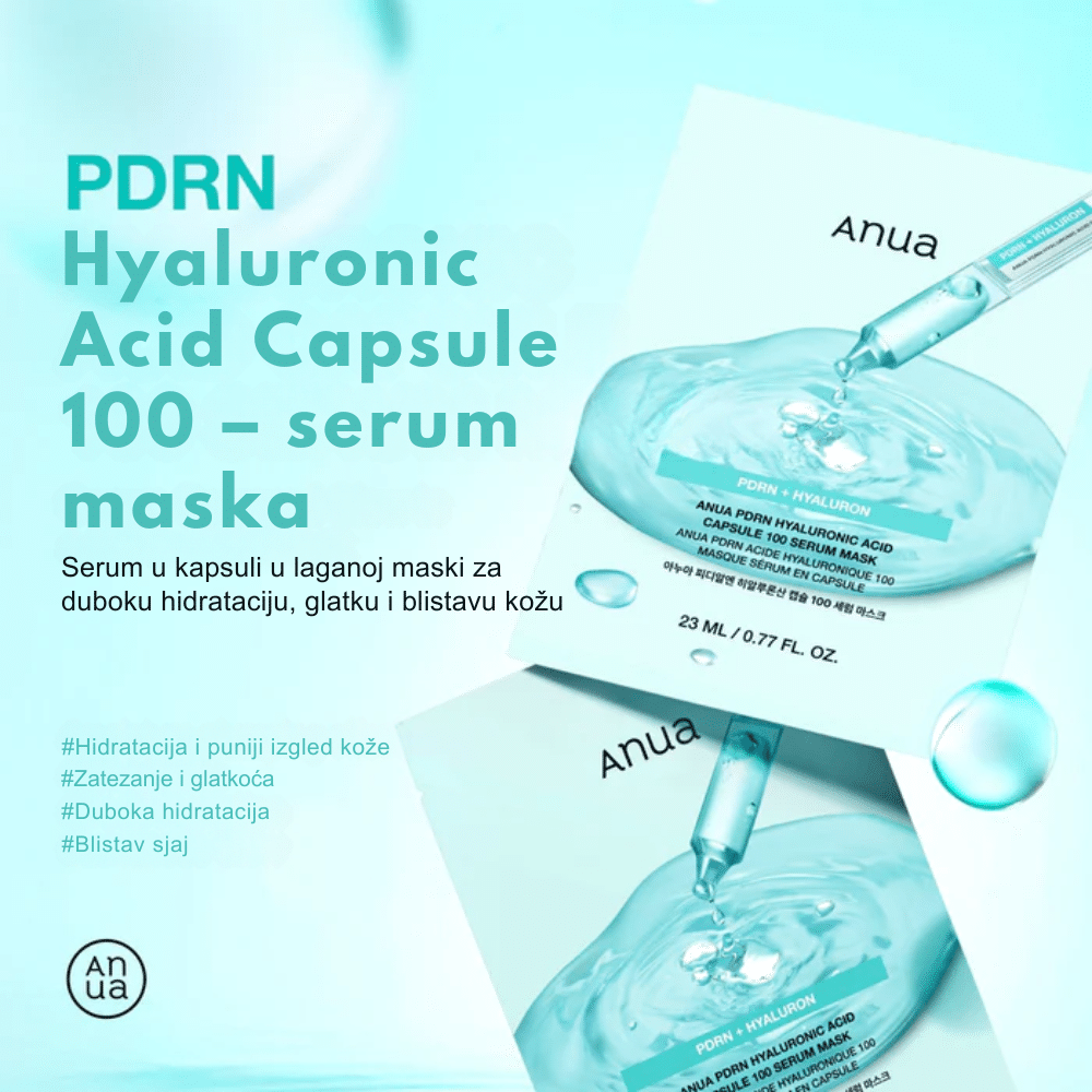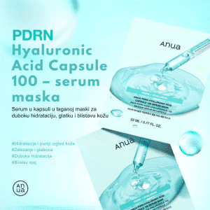 Anua PDRN Hyaluronic Acid Capsule 100 Serum Mask kombinuje hidratantni serum sa kapsulama – bogat PDRN (izl. salmon DNA), hijaluronskom kiselinom (u 11 oblika) i kolagenom – i sheet masku koja dodatno pojačava hidrataciju, regeneraciju i “glass skin” efekat. Maska pruža intenzivnu negu, obnavljajući kožu, učvršćujući barijeru i vraćajući joj sjaj i elastičnost – idealno za sve tipove kože. Formula je bez mirisa, nežna i pogodna i za osetljivu kožu