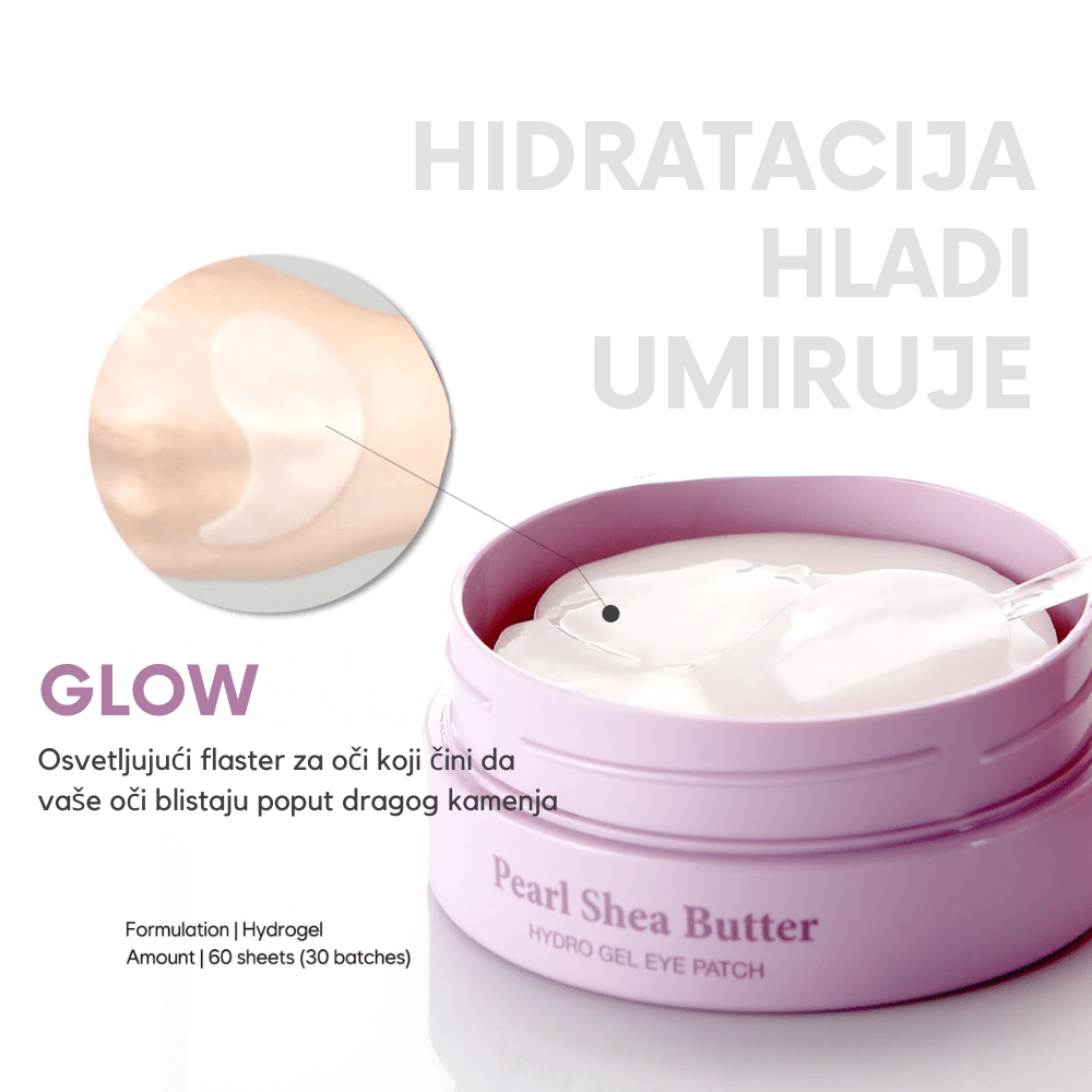 Hidrogel patchevi sa shea butter i pearl powder za trenutnu hidrataciju, osveženje i posvetljenje regije ispod očiju.