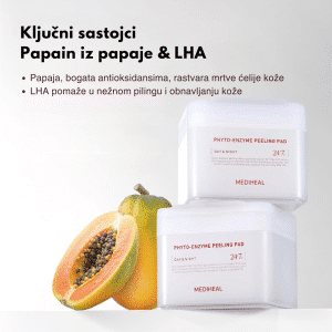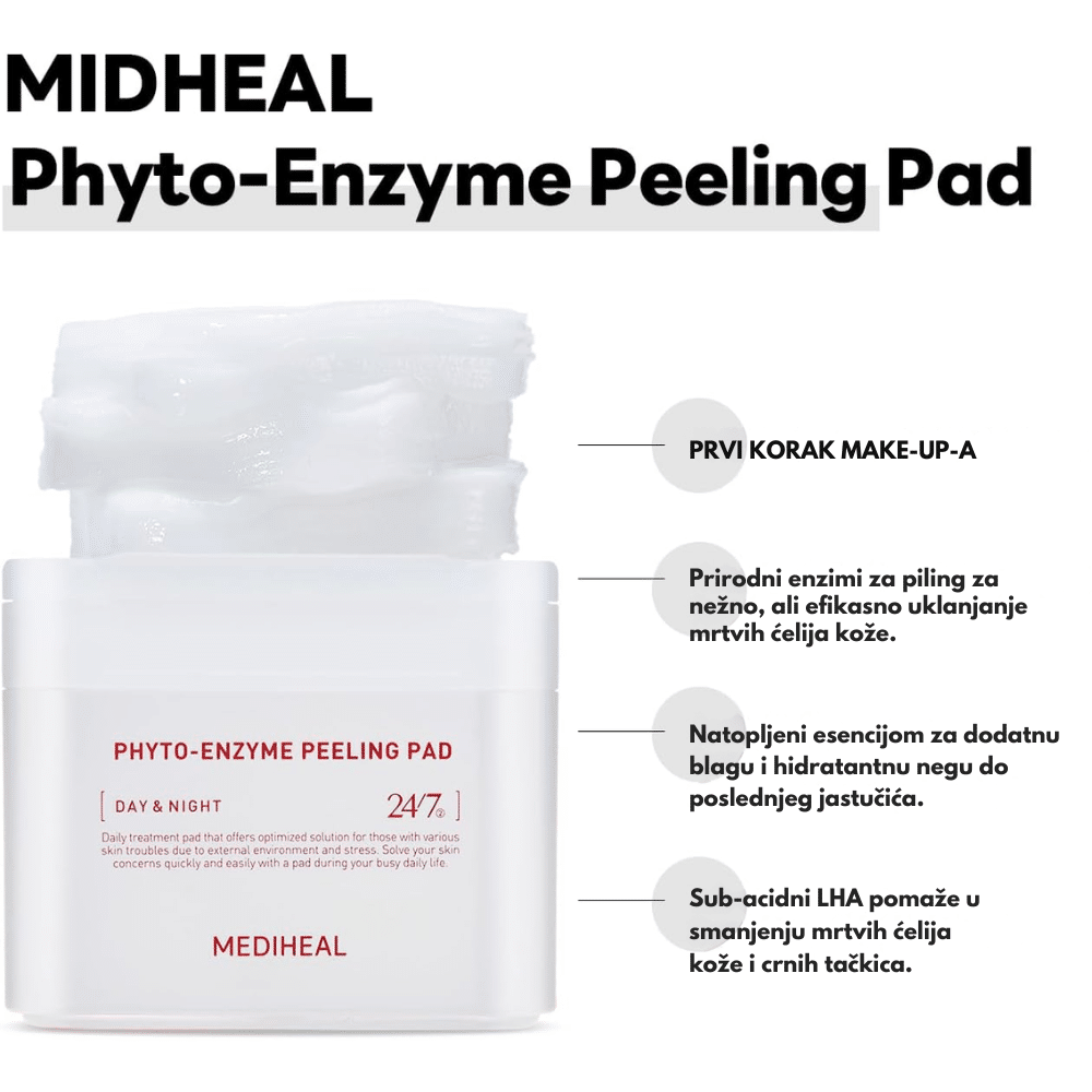 Mediheal Phyto-Enzyme Peeling Pad predstavlja inovativno rešenje za neinvazivnu eksfolijaciju i dubinsko pročišćavanje pora, dizajnirano da transformiše grubu i beživotnu teksturu kože. Ovi jastučići koriste snagu prirodnih enzima papaje i LHA (lipohidroksilne kiseline) kako bi nežno, ali efikasno rastvorili mrtve ćelije kože i uklonili višak sebuma bez izazivanja iritacija karakterističnih za klasične pilinge. Formula ciljano deluje na mitisere i teksturalne nepravilnosti, ostavljajući pore čistim, a površinu lica neverovatno glatkom i mekom. Jastučići su izrađeni od specijalne tkanine sa “dual” efektom – jedna strana je teksturirana za mehaničko uklanjanje nečistoća, dok je druga glatka za umirivanje i finalnu hidrataciju. Zahvaljujući velikom pakovanju i bogatoj natopljenosti esencijom, ovi jastučići su idealni za svakodnevnu upotrebu kod kože koja je sklona zapušenim porama ili ljuštenju. Redovnim korišćenjem, koža postaje prosvetljena, tonus ujednačen, a apsorpcija narednih koraka u rutini nege značajno poboljšana.