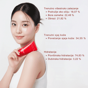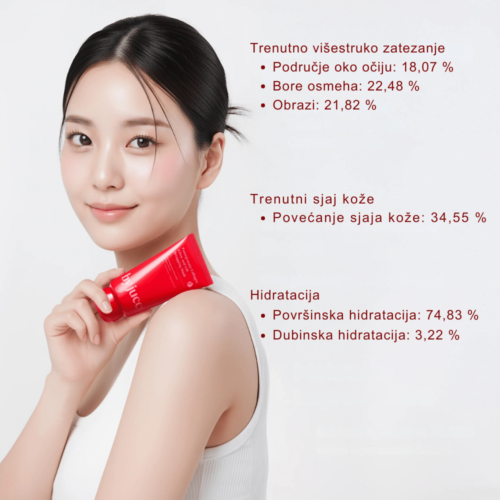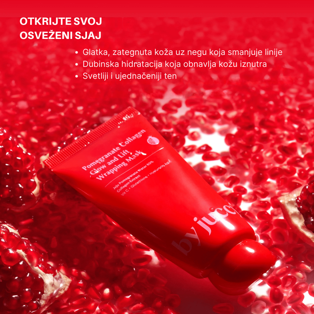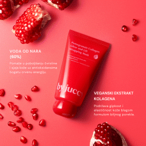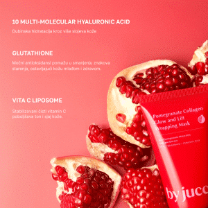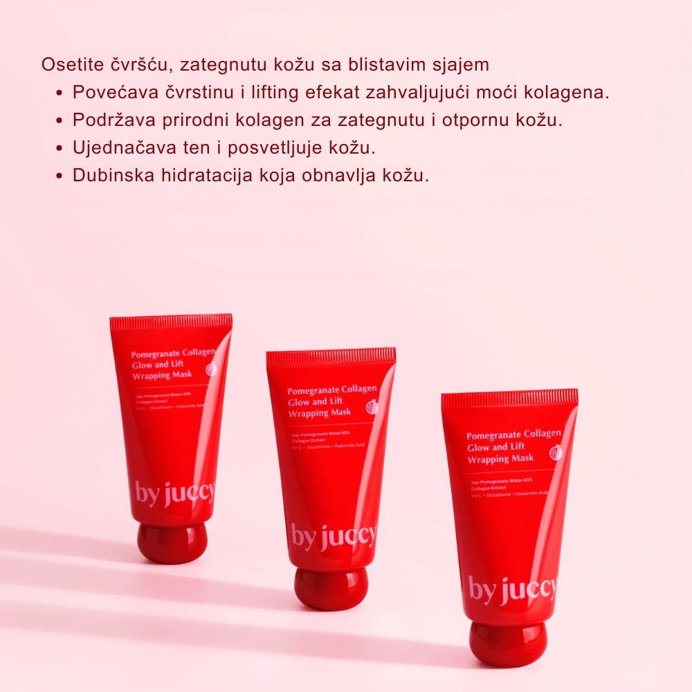 by juccy donosi inovaciju u kućnoj nezi lica sa Pomegranate Collagen Glow and Lift Wrapping maskom, koja koristi naprednu tehnologiju “umotavanja” kože za maksimalnu apsorpciju aktivnih sastojaka. Ova maska nije običan tretman; ona stvara tanak, providan film preko lica koji omogućava kolagenu i ekstraktu nara da prodru duboko u dermis, sprečavajući isparavanje vlage i hranljivih materija. Glavni zvezdani sastojak, ekstrakt nara, poznat je kao prirodni eliksir mladosti bogat estrogenom i antioksidantima, koji u kombinaciji sa niskomolekularnim kolagenom vidno podiže opuštene konture lica i vraća mu izgubljenu jedrinu.