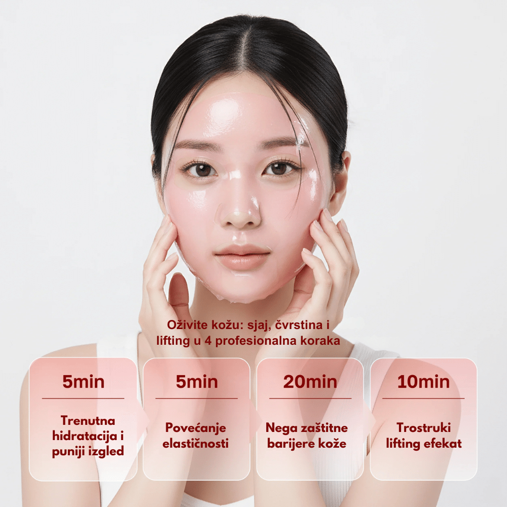 Inovativna peel-off maska sa kolagenom i narom za zatezanje lica. Dubinski hidrira, pruža vidljiv lifting efekat i ostavlja kožu blistavom, jedrom i podmlađenom.