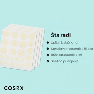Cosrx je korejski kozmetički brend poznat po svojoj efikasnosti i jednostavnim, ali visokokvalitetnim proizvodima za negu kože. Osnovan 2013. godine, Cosrx je postao popularan zahvaljujući svojoj posvećenosti stvaranju proizvoda koji koriste minimalan broj sastojaka, ali sa maksimalnim učinkom, što ih čini idealnim za osetljivu kožu. Brend nudi širok spektar proizvoda, uključujući serume, tonere, maske i kreme, sa naglaskom na upotrebi sastojaka kao što su AHA, BHA, niacinamid, propolis i drugi biljni ekstrakti. Njihovi proizvodi su veganski, cruelty-free i ne sadrže parabene, sulfate ili veštačke mirise. Cosrx je prepoznat po svojoj jednostavnoj, ali efikasnoj formuli koja pomaže u rešavanju problema sa kožom kao što su akne, suvoća i nepravilnosti. Takođe, brend se ističe svojom posvećenostšću naučnoj i dermatološkoj istraživačkoj osnovi.