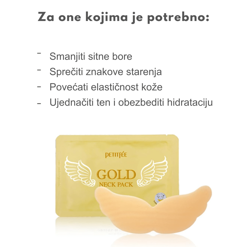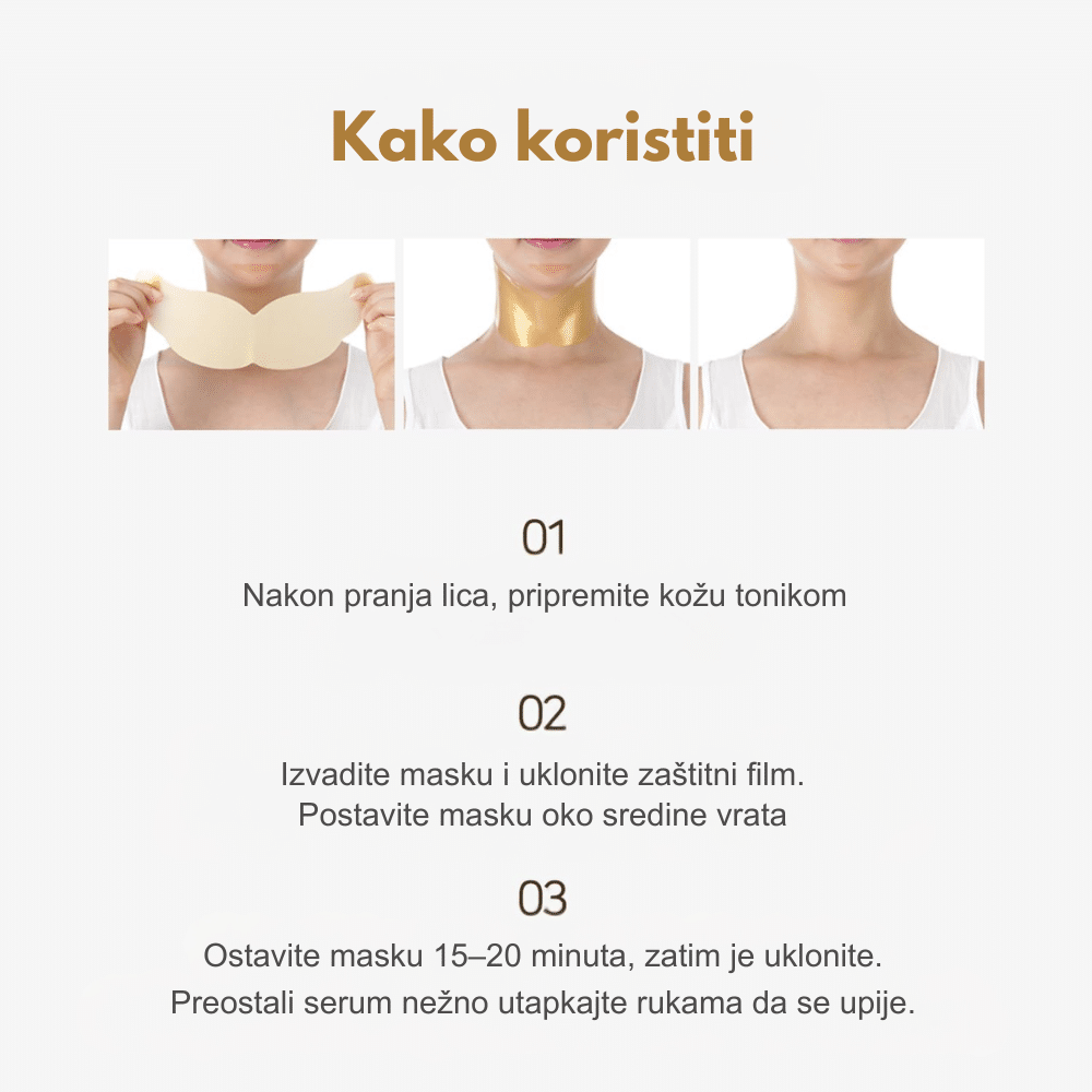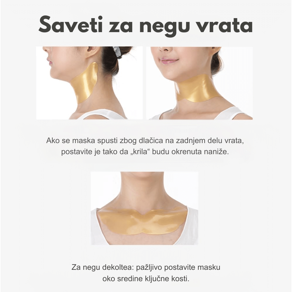 Hidrogel maska sa zlatom i kolagenom koja hidrira, zateže i poboljšava elastičnost kože vrata.
