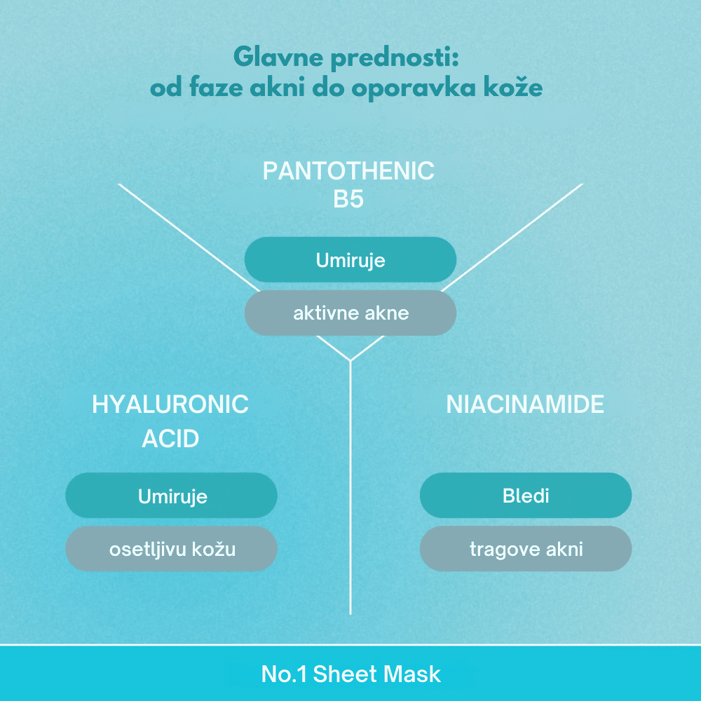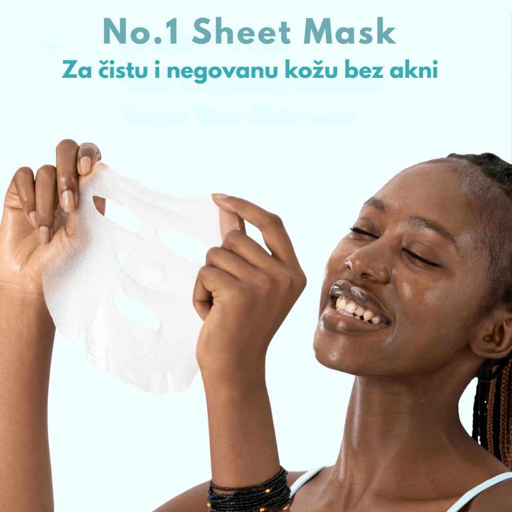 Sheet maska sa B5 i hijaluronskom kiselinom koja hidrira, umiruje i jača kožu, vraćajući joj elastičnost i sjaj.