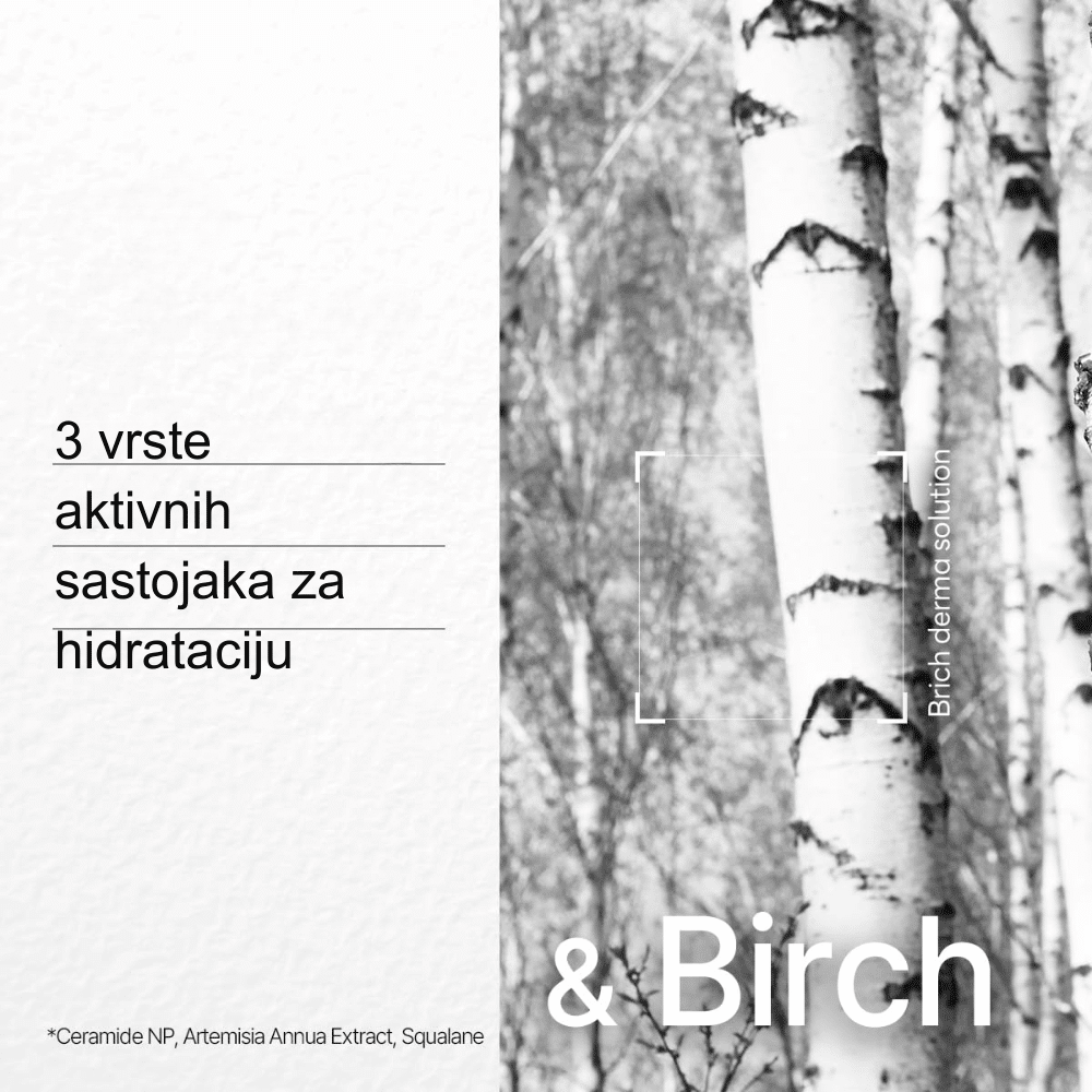 Birch (breza) je prirodni sastojak bogat antioksidansima, aminokiselinama i mineralima, koji se koristi u kozmetici zbog svojih hidratantnih, umirujućih i obnavljajućih svojstava. Ekstrakt ili sok breze pomaže u ojačavanju zaštitne barijere kože, zadržavanju vlage i poboljšanju elastičnosti, čineći kožu mekšom i hidriranom. Zahvaljujući svojim umirujućim svojstvima, breza smanjuje crvenilo i iritacije, što je čini pogodnom za osetljivu i dehidriranu kožu. Takođe sadrži prirodne antioksidanse, koji štite kožu od spoljašnjih uticaja i usporavaju znake starenja. Breza se često koristi u hidratantnim tonerima, esencijama i kremama, gde pruža dugotrajnu vlagu i doprinosi zdravom, osveženom tenu.