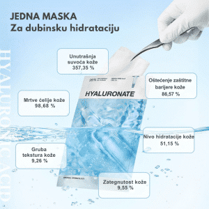 Dubinski hidrirajte lice uz masku sa kompleksom hijaluronske kiseline. Intenzivno vraća vlagu, popunjava dehidratacijske linije i pruža koži dugotrajnu mekoću.
