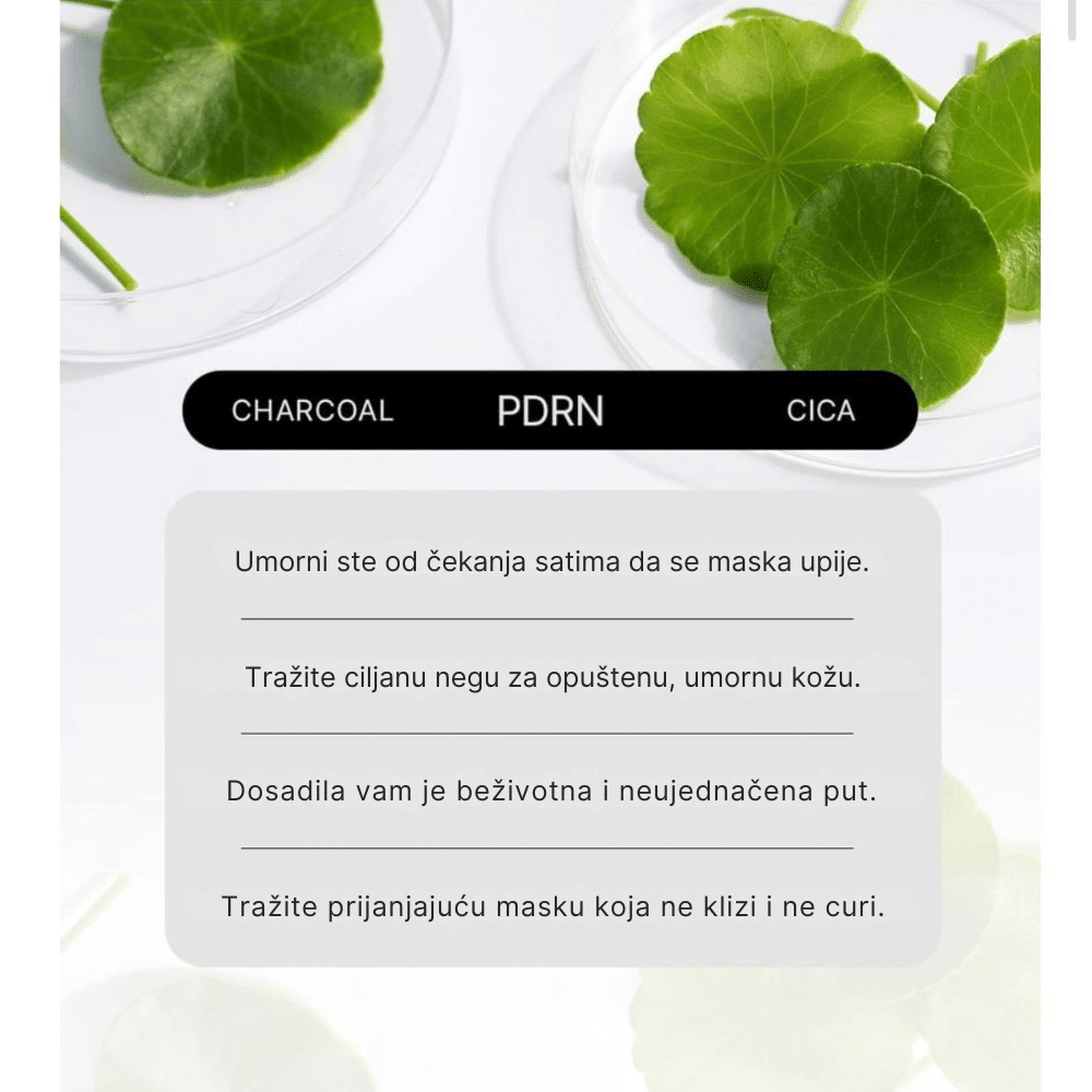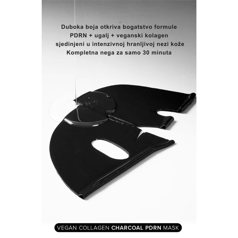 Inovativna maska sa aktivnim ugljem, veganskim kolagenom i PDRN-om. Dubinski čisti pore, uklanja nečistoće i intenzivno učvršćuje kožu za čist i podmlađen ten lica.