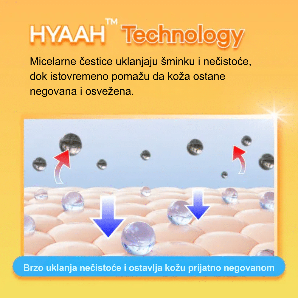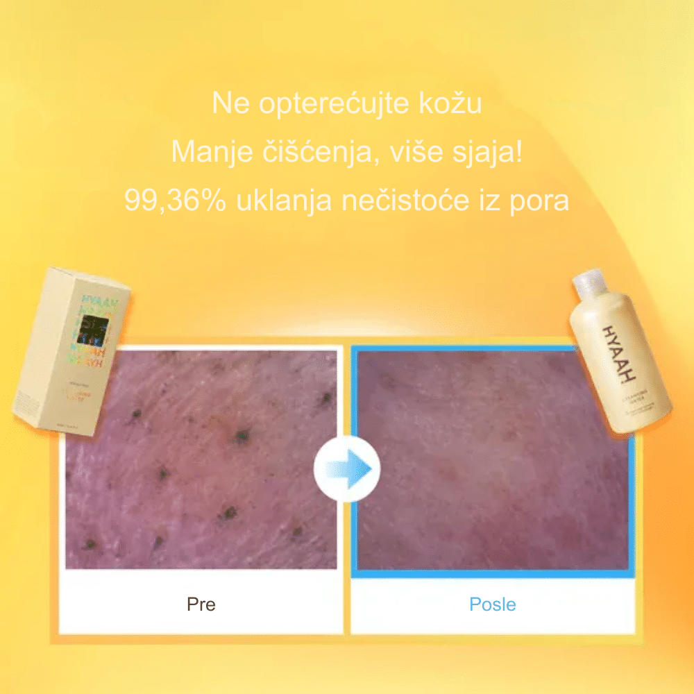 HYAAH Mild But Deep Cleansing Water je nežna, ali efikasna micelarna voda koja temeljno uklanja šminku, nečistoće i višak sebuma, ostavljajući kožu osveženom i hidriranom. Formulisana sa 7 esencijalnih sastojaka – uključujući ekstrakte origana, čempresa, bele vrbe, fermentisane soje, portulaka, cimeta i korena scutellaria baicalensis – ova micelarna voda ne samo da čisti, već i umiruje kožu, pružajući joj potrebnu negu. Zahvaljujući HYAAH-ovoj jedinstvenoj multi-micelarnoj metodi, brzo uklanja nečistoće i šminku, dok zadržava vlagu u koži, sprečavajući isušivanje. Pogodna je za sve tipove kože, uključujući osetljivu, i može se koristiti svakodnevno bez bojazni od iritacija.
