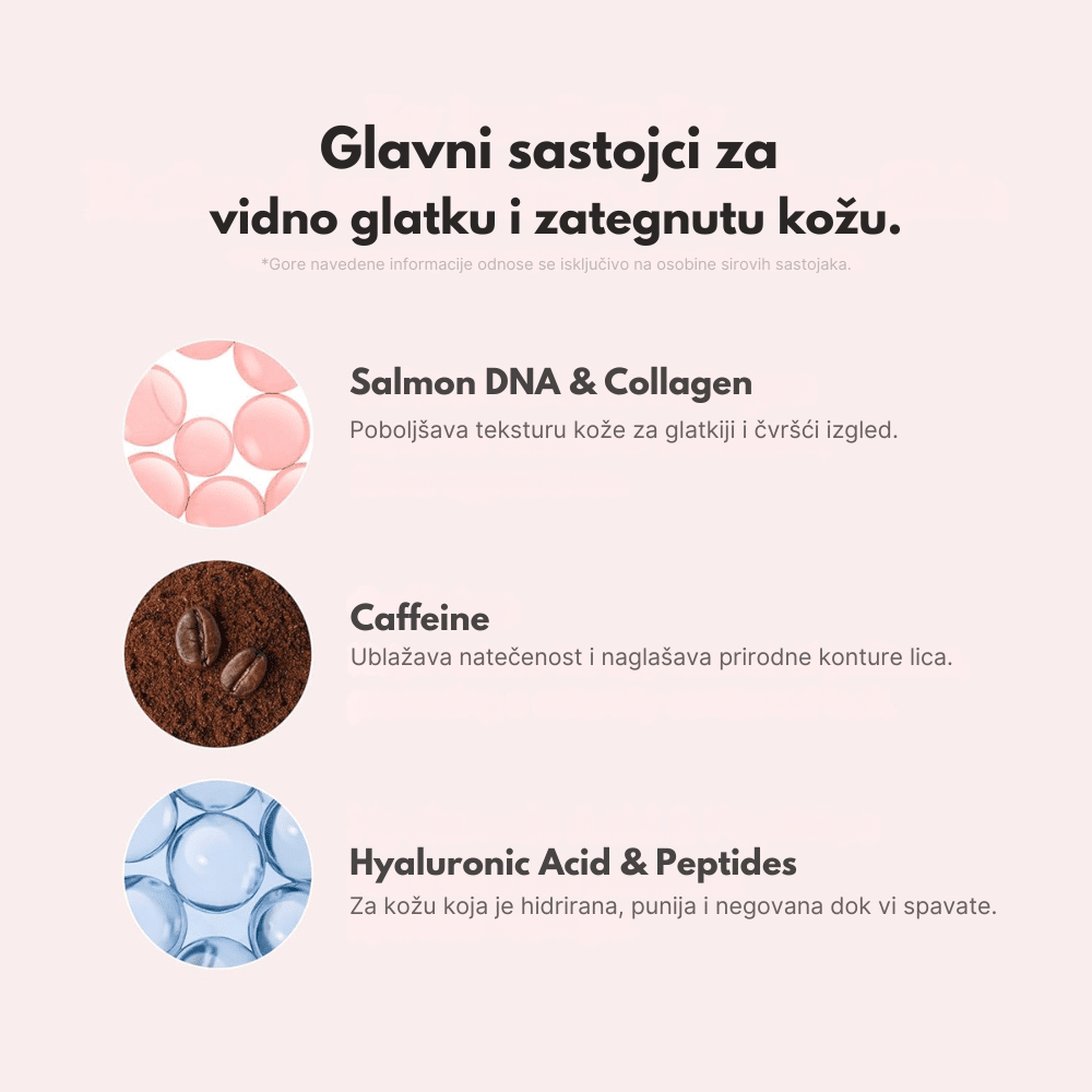 Noćna „wrapping“ maska sa PDRN-om i kofeinom za čvršću, hidriranu i odmornu kožu do jutra.