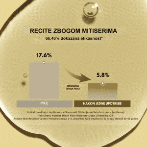 Formulacija sa 95% prirodnih sastojaka uključuje hranljiva biljna ulja poput jojobe, makadamije i masline, koja obnavljaju kožnu barijeru, sprečavaju gubitak vlage i održavaju kožu mekom i elastičnom. Zahvaljujući svojoj laganoj i nemasnoj teksturi, ovo ulje se lako emulguje u kontaktu sa vodom, pretvarajući se u mlečnu emulziju koja temeljno ispira nečistoće bez ostavljanja masnog traga.