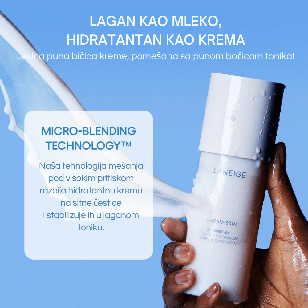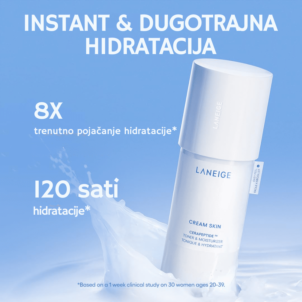 LANEIGE Cream Skin Cerapeptide Refiner Mini je hidratantni toner/krema hibrid sa Cerapeptide™ kompleksom, ceramidima, peptidima i uljem semena „meadowfoam“ koji intenzivno hidrira, jača barijeru kože i zateže ten — u putnoj mini verziji idealnoj za probu ili putovanje.