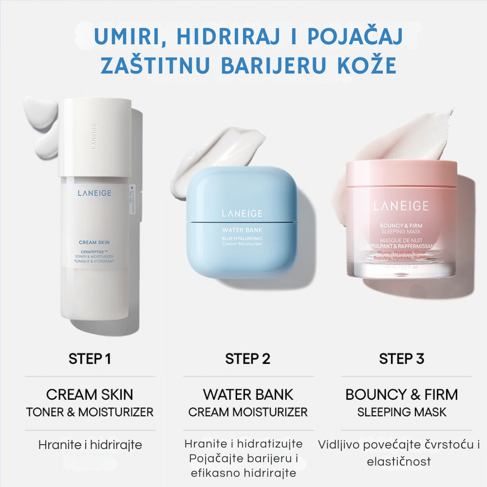 Laneige je korejski kozmetički brend poznat po svojoj posvećenosti inovativnim formulacijama i visokokvalitetnim proizvodima za negu kože i šminku. Osnovan je 1994. godine kao deo Amorepacific grupe, sa misijom da pruži "dobro spavanje" koži kroz efikasne proizvode. Laneige nudi širok asortiman proizvoda, uključujući hidratantne kreme, serume, tonere i maske. Njihova poznata linija "Water Sleeping Mask" pruža intenzivnu hidrataciju tokom noći. Brend takođe nudi proizvode za šminkanje, kao što su ruževi, puderi i palete senki, koji kombinuju funkcionalnost sa zabavnim dizajnom. Laneige se ističe korišćenjem naprednih tehnologija i prirodnih sastojaka, kao što su kompleksi voća i biljaka, kako bi pružio efikasnu negu kože.