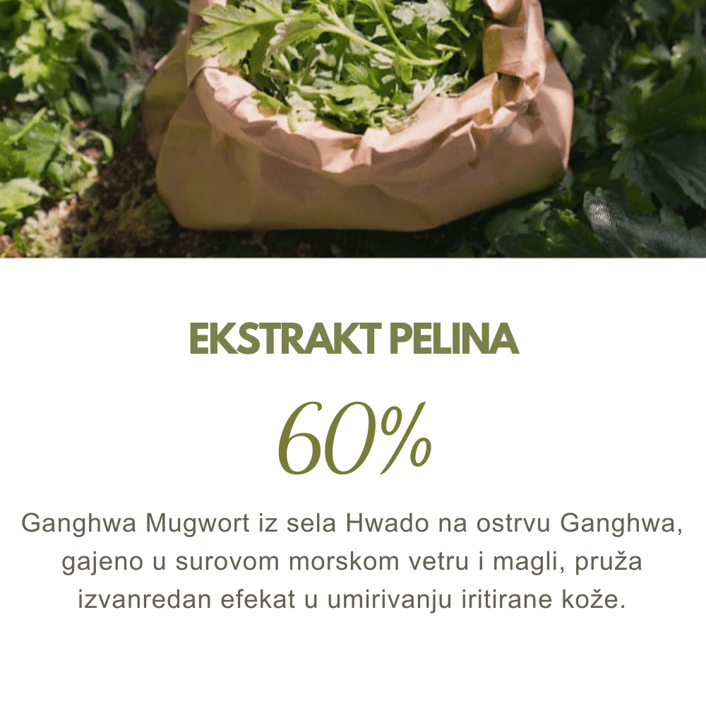 Esencija sa čistim ekstraktom pelina dodatno umiruje kožu, smanjuje crvenilo i pruža hidrataciju, pomažući u obnavljanju prirodne ravnoteže kože. Zajedno čine idealan duo za svakodnevnu negu kože sklone iritacijama, pružajući osećaj smirenosti i svežine.