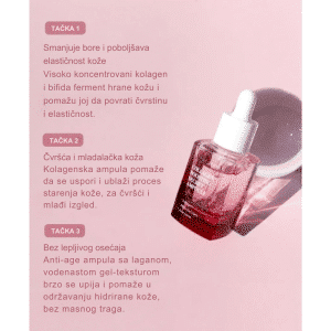 Ampula koja podstiče elastičnost kože, poboljšava čvrstoću i pruža intenzivnu hidrataciju za zaglađen i svež izgled tena.