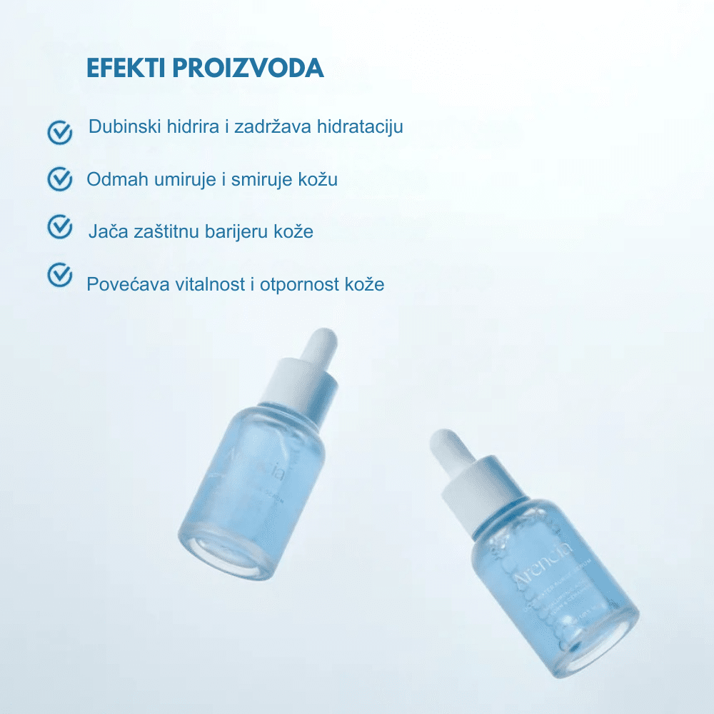 ARENCIA Deep Water Surge Serum je lagani hidratantni serum formulisan za intenzivno vlaženje i osveženje kože. Vodena tekstura brzo se upija i pomaže u obnavljanju optimalnog nivoa hidratacije, ostavljajući kožu glatkom, elastičnom i vidno osveženom bez osećaja težine.