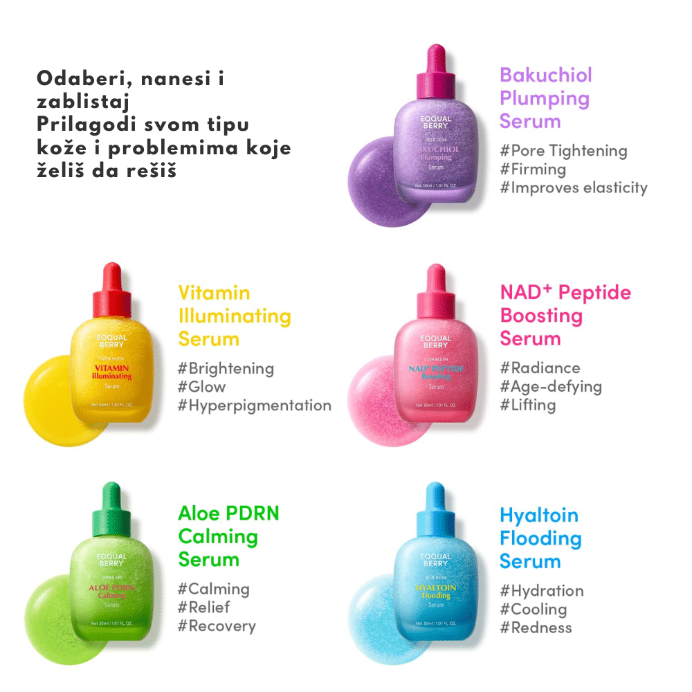 EQQUALBERRY NAD+ Peptide Boosting Serum je visokoefikasni serum koji kombinuje aktivni koenzim NAD+ i moćne peptide uz ceramide i veganski kolagen kako bi podstakao proizvodnju kolagena, ojačao zaštitnu barijeru kože i vratio čvrstinu, elastičnost i blistav izgled.