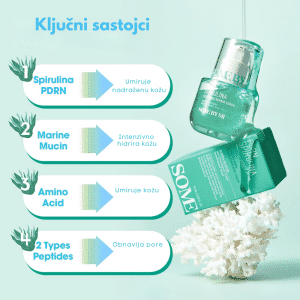 Serum sa spirulina-PDRN-om i morskim aminokiselinama za umirujuću, obnovljenu i hidriranu kožu.