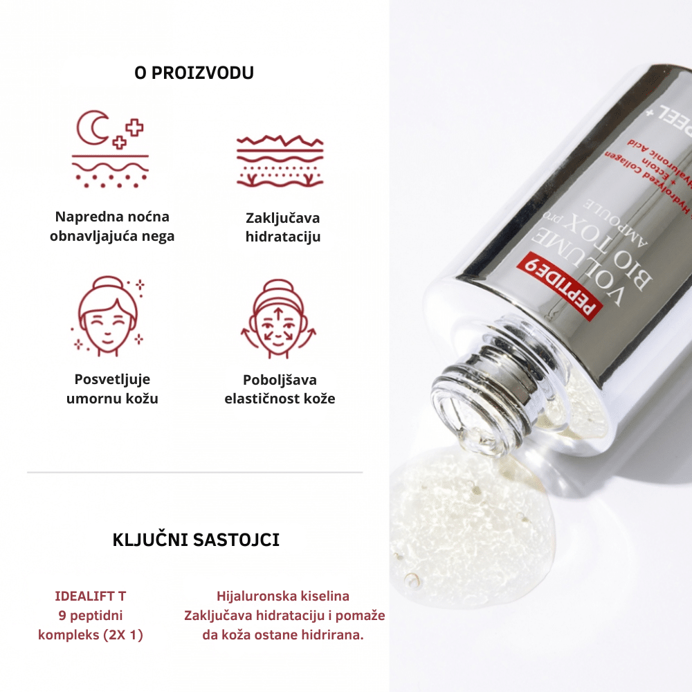 Profesionalni serum sa 9 peptida i Volufiline-om za intenzivan volumen i lifting. Popunjava bore, učvršćuje lice i vraća koži mladalačku jedrinu i blistavost.