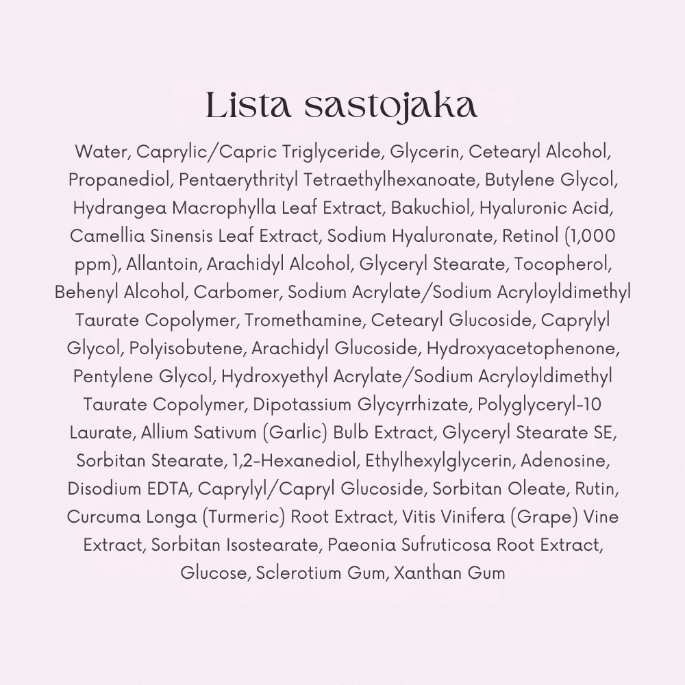 Ciljana retinol krema deluje direktno na problematične zone sklone borama, poboljšava teksturu i elastičnost kože i doprinosi ujednačenijem tenu. Zajedno nude efikasnu, ali uravnoteženu rutinu protiv znakova starenja, prilagođenu postepenom uvođenju aktivnih sastojaka.
