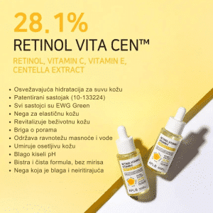 Retinol je oblik vitamina A koji se koristi u kozmetici zbog svojih anti-aging i regenerativnih svojstava. Pomaže u ubrzavanju obnove ćelija, smanjenju bora, poboljšanju elastičnosti kože i ujednačavanju tena. Takođe stimuliše proizvodnju kolagena, čineći kožu čvršćom i glatkijom. Osim što deluje protiv starenja, retinol pomaže u regulisanju lučenja sebuma i čišćenju pora, zbog čega je koristan i za masnu i problematičnu kožu sklonu aknama. Zbog svoje jačine, retinol može izazvati iritaiciju i suvoću, pa se preporučuje postepeno uvođenje u rutinu i korišćenje uz hidratantne proizvode i SPF zaštitu.