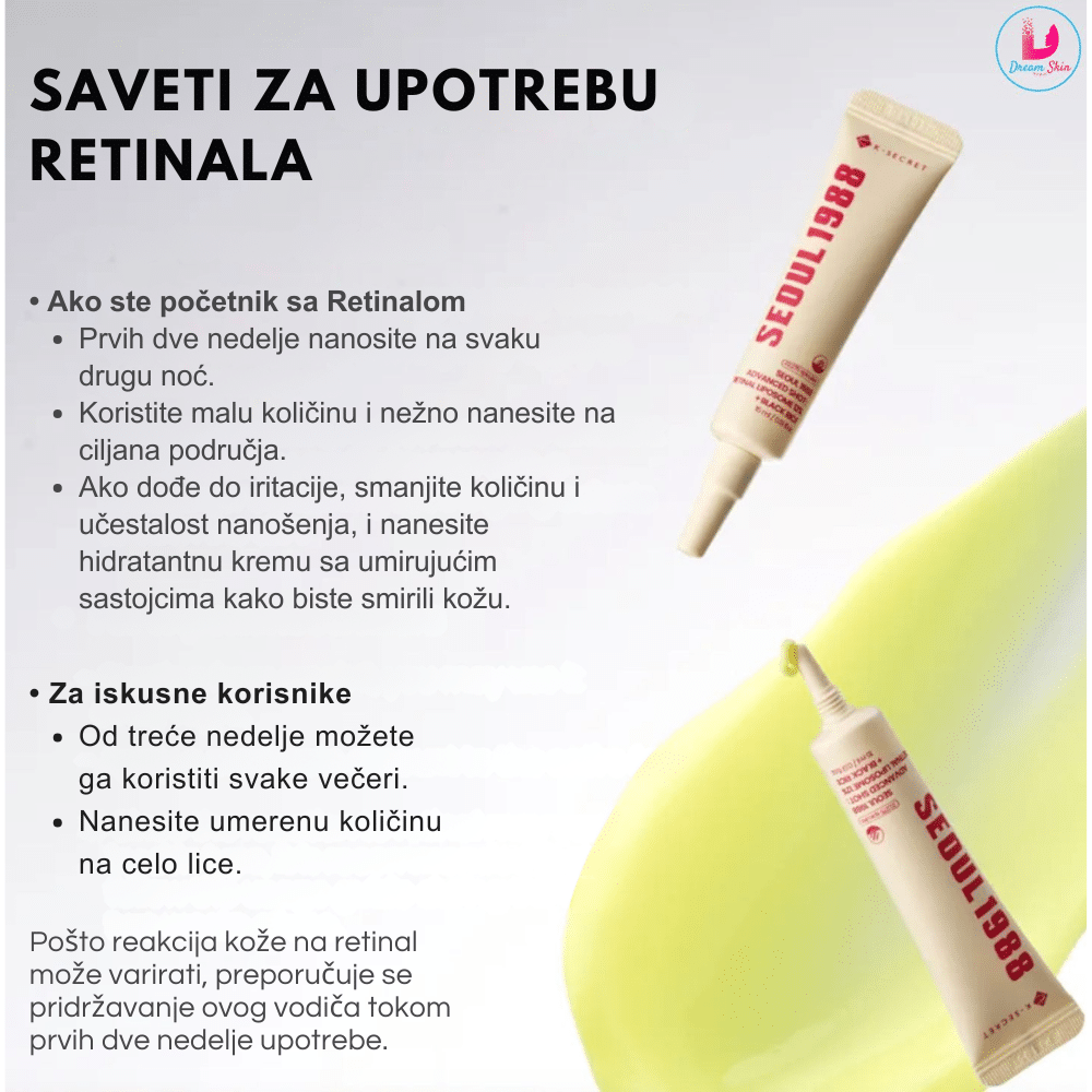 Naneti malu količinu na čistu i potpuno suvu kožu, uveče. Koristiti 2–3 puta nedeljno pa postepeno povećavati učestalost. Izbegavati područje oko očiju i kombinovanje sa jakim AHA/BHA kiselinama istog dana. Uvek obavezno nanositi SPF tokom dana.