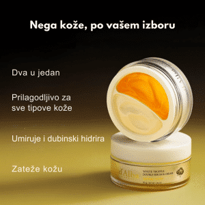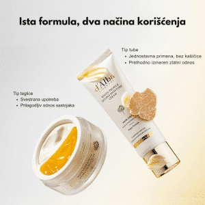 d’Alba White Truffle Double Serum & Cream je dvostruka formula koja kombinuje serum i kremu za intenzivnu negu kože. Obogaćen belim tartufom, pomaže u poboljšanju elastičnosti, hidratacije i sjaja kože.