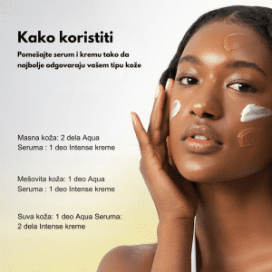 Pomešati serum i kremu pre nanošenja i naneti na čistu kožu lica. Koristiti ujutru i uveče kao deo rutine nege.