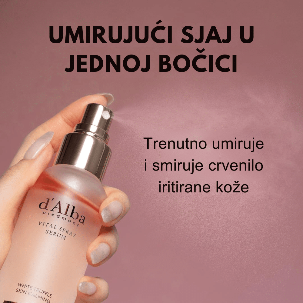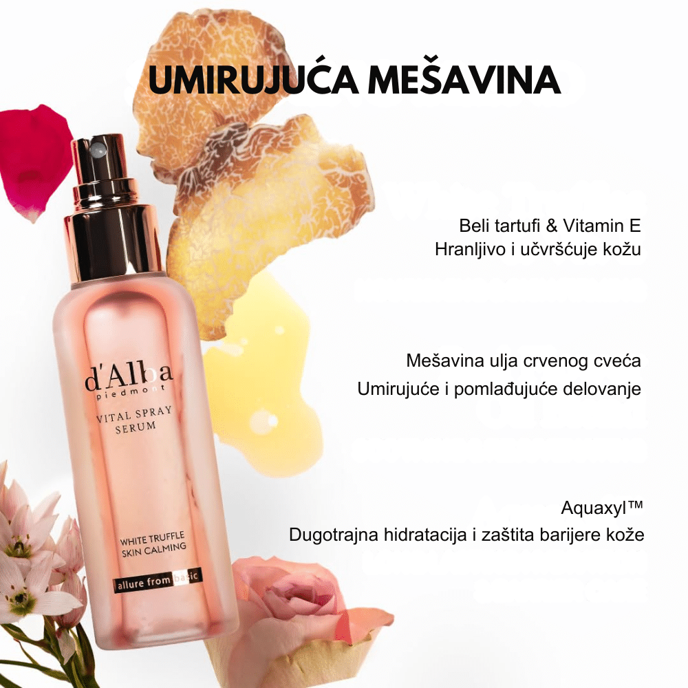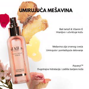 d’Alba White Truffle Vital Spray Serum je hidratantni sprej serum koji revitalizuje kožu i vraća joj zdrav sjaj. Sadrži beli tartuf i hranljive sastojke za svakodnevnu negu.
