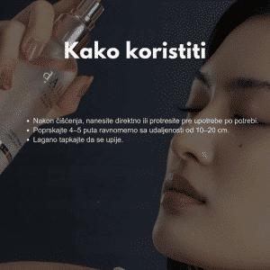 Zatvorenih očiju poprskati lice sa udaljenosti od 20–30 cm. Koristiti po potrebi tokom dana.