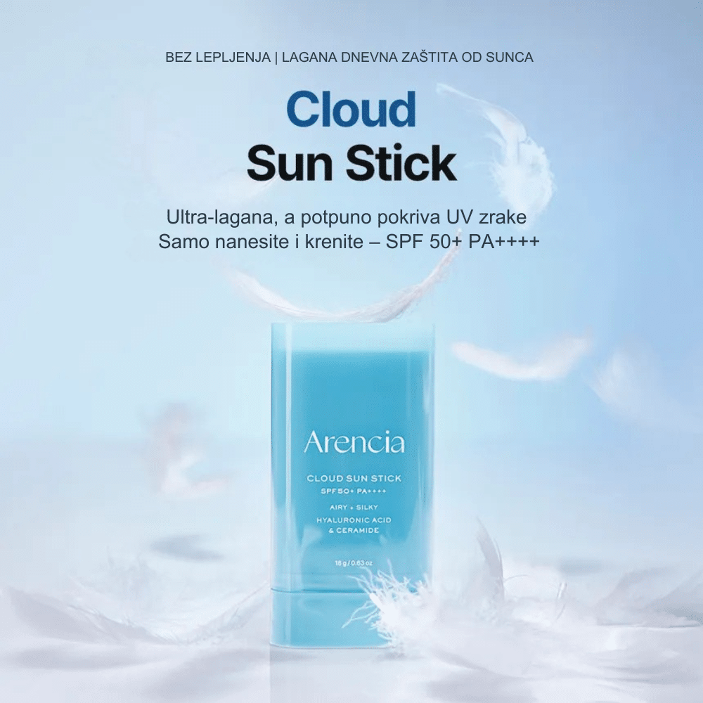 ARENCIA Cloud Sun Stick je praktičan sun stick za svakodnevnu zaštitu kože od UVA i UVB zračenja. Lagana, neljepljiva tekstura lako klizi po koži, ne ostavlja beli trag i pruža pouzdanu zaštitu od sunca uz osećaj komfora tokom dana.
