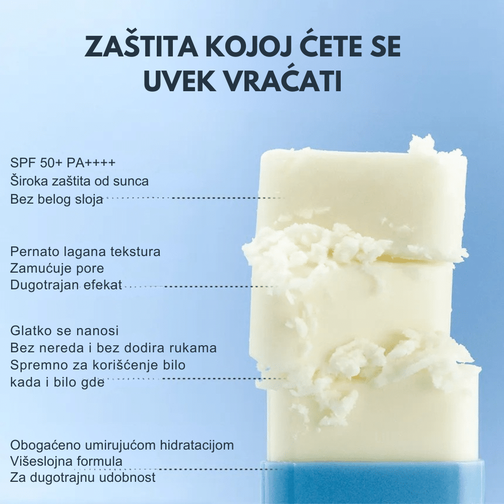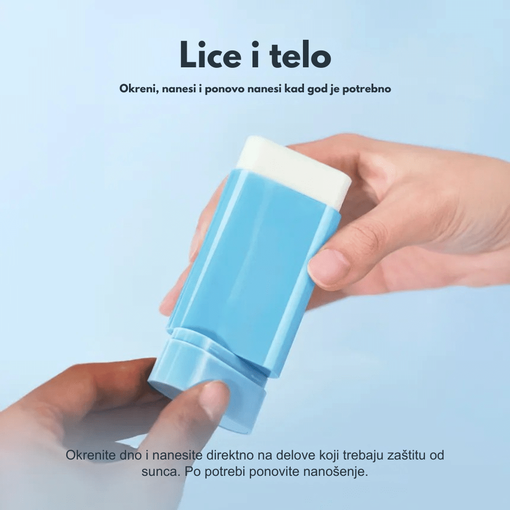 Praktičan sun stick sa laganom teksturom za svakodnevnu UVA i UVB zaštitu bez belog traga.