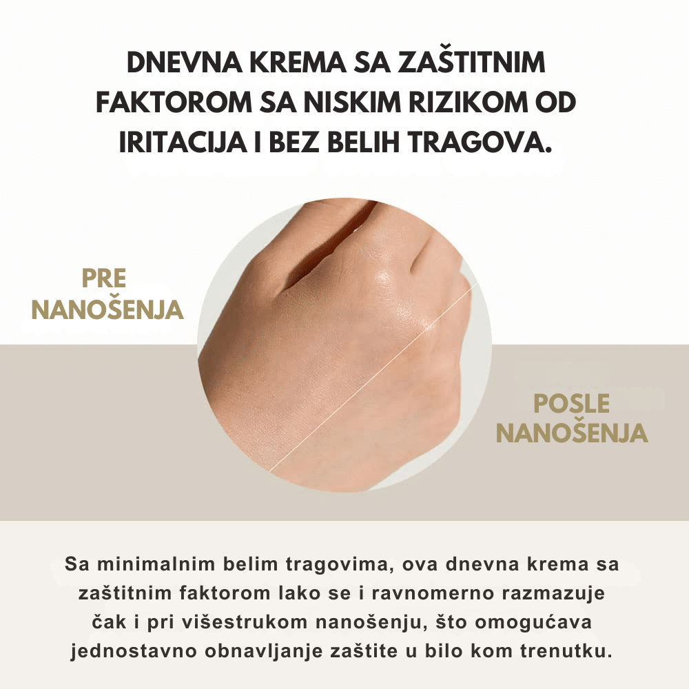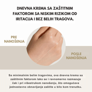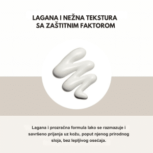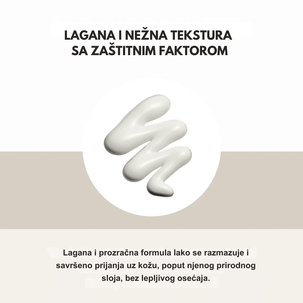 SPF30 koji pruža laganu, mineralnu zaštitu od sunca uz umirujući ekstrakt Centella Asiatica, idealna za osetljivu kožu.