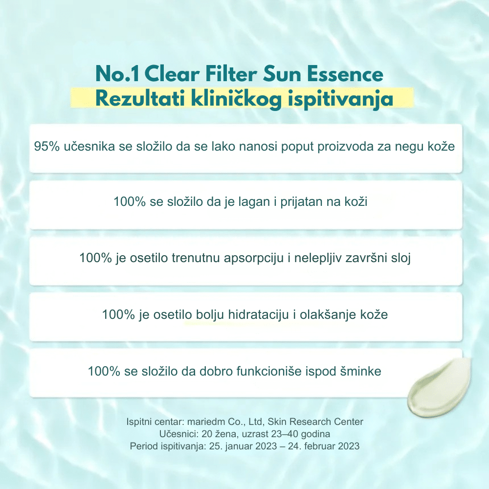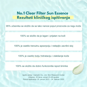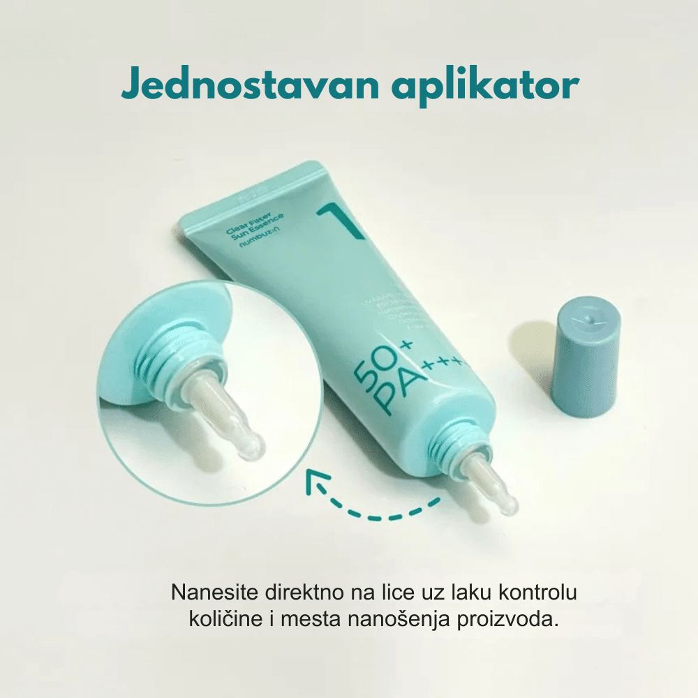 Numbuzin No.1 Clear Filter Sun Essence predstavlja savršen spoj visoke zaštite od sunca i lagane hidrirajuće esencije, pružajući koži maksimalnu odbranu od UV zračenja bez težine klasičnih krema. Ova inovativna formula sa zaštitnim faktorom SPF50+ i PA++++ nudi širok spektar zaštite, dok njena vodenasta tekstura klizi po koži i trenutno se upija, ne ostavljajući beli trag niti masni sjaj. Obogaćena je umirujućim biljnim ekstraktima poput sladića i centelle asiatice, koji efikasno redukuju crvenilo i sprečavaju iritacije uzrokovane toplotom i suncem. Zahvaljujući “Clear Filter” tehnologiji, ovaj proizvod deluje kao prozirni štit koji osvežava ten i pruža dubinsku hidrataciju tokom celog dana. Idealna je kao podloga za šminku jer zaglađuje površinu kože i sprečava isušivanje, ostavljajući lice svežim, hidriranim i potpuno zaštićenim. Redovnom upotrebom, koža postaje otpornija na foto-starenje i hiperpigmentaciju, zadržavajući svoj prirodni sjaj i zdrav izgled čak i tokom najsunčanijih dana.