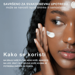 Naneti odgovarajuću količinu proizvoda na lice kao poslednji korak jutarnje rutine. Ponoviti nanošenje tokom dana po potrebi.