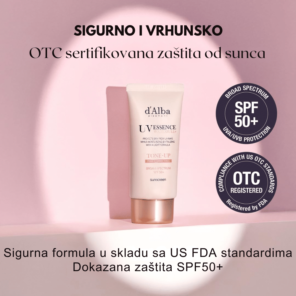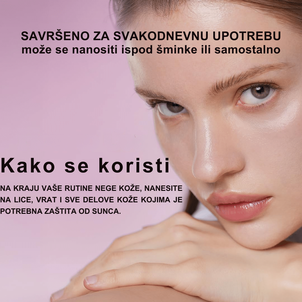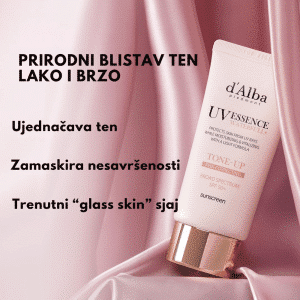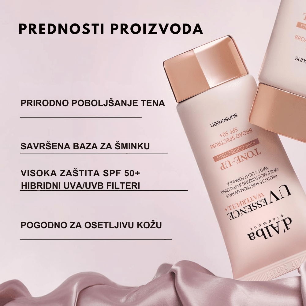 SPF50+ PA++++ ton-up krema sa pink efektom za ujednačen i osvežen ten.