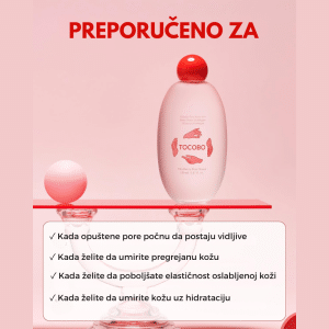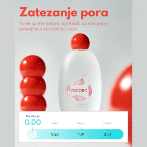 Tocobo je korejski brend posvećen stvaranju efikasnih proizvoda koji poboljšavaju unutrašnju lepotu. Njihova filozofija se temelji na "Jasnoći", "Modernosti" i "Zadovoljstvu", sa naglaskom na transparentnost sastojaka i usklađenost sa najnovijim trendovima lepote. Brend nudi širok asortiman proizvoda, uključujući proizvode za čišćenje, negu kože, zaštitu od sunca, negu usana i setove. Njihovi proizvodi su veganski i formulirani sa pažljivo odabranim sastojcima, kao što su kokosov glineni čistač, bio-vodena krema za sunce i gel za regiju oko očiju sa kolagenom. Tocobo se ističe posvećenostšću inovacijama i izazivanju statusa quo u industriji lepote, stvarajući proizvode koji kombinuju moderni dizajn sa efikasnošću.