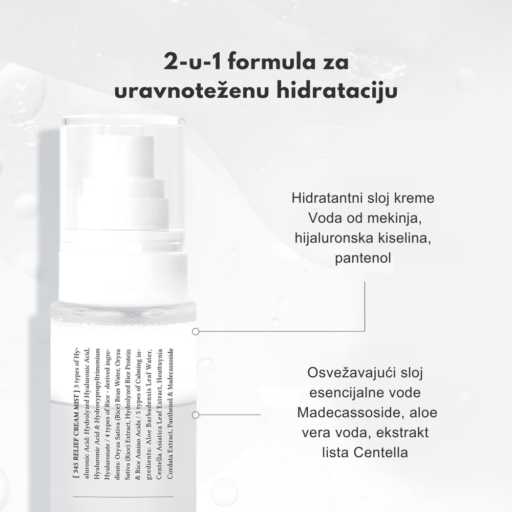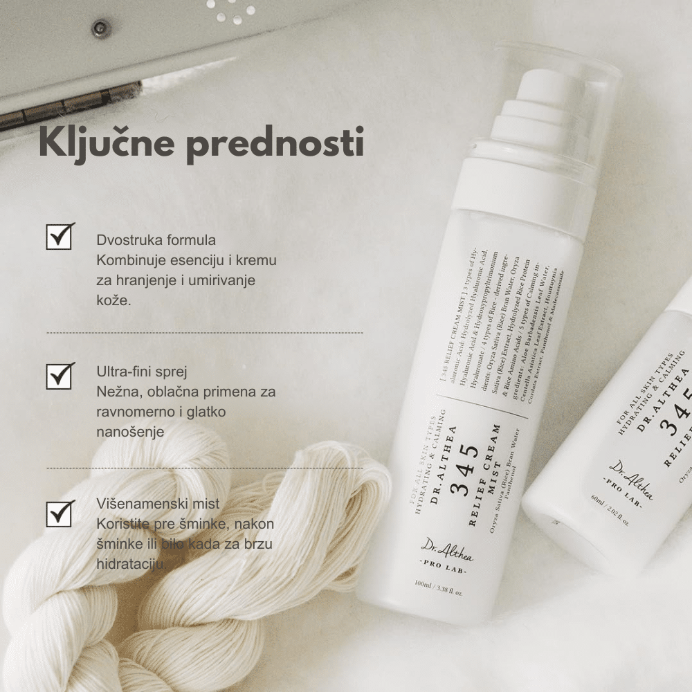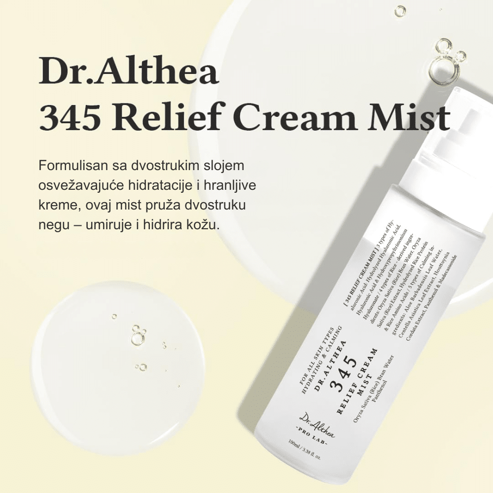 Dr.Althea 345 Relief Cream Mist je umirujući kremasti mist namenjen brzoj hidrataciji i smanjenju iritacija. Pomaže u jačanju barijere kože i pruža trenutni osećaj komfora.