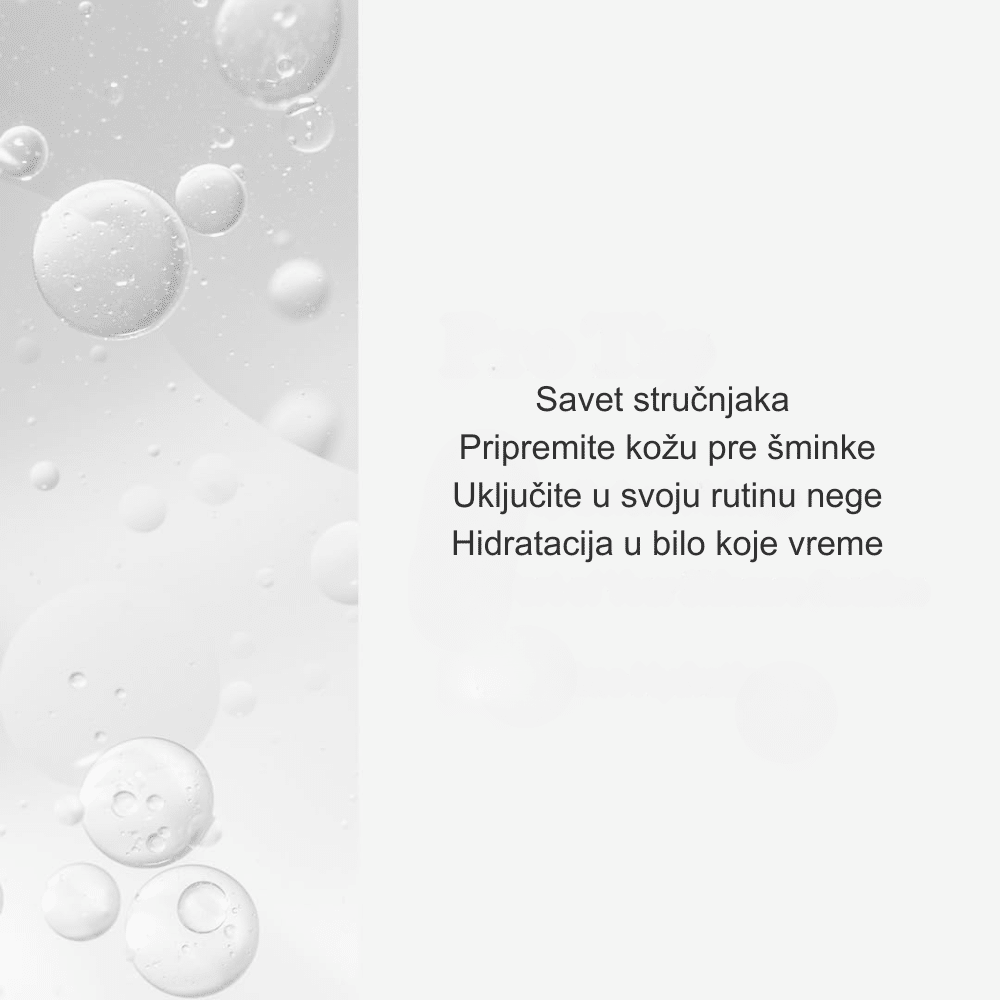 Zatvorenih očiju poprskati lice sa udaljenosti od 20–30 cm. Koristiti po potrebi tokom dana ili kao završni korak nege.