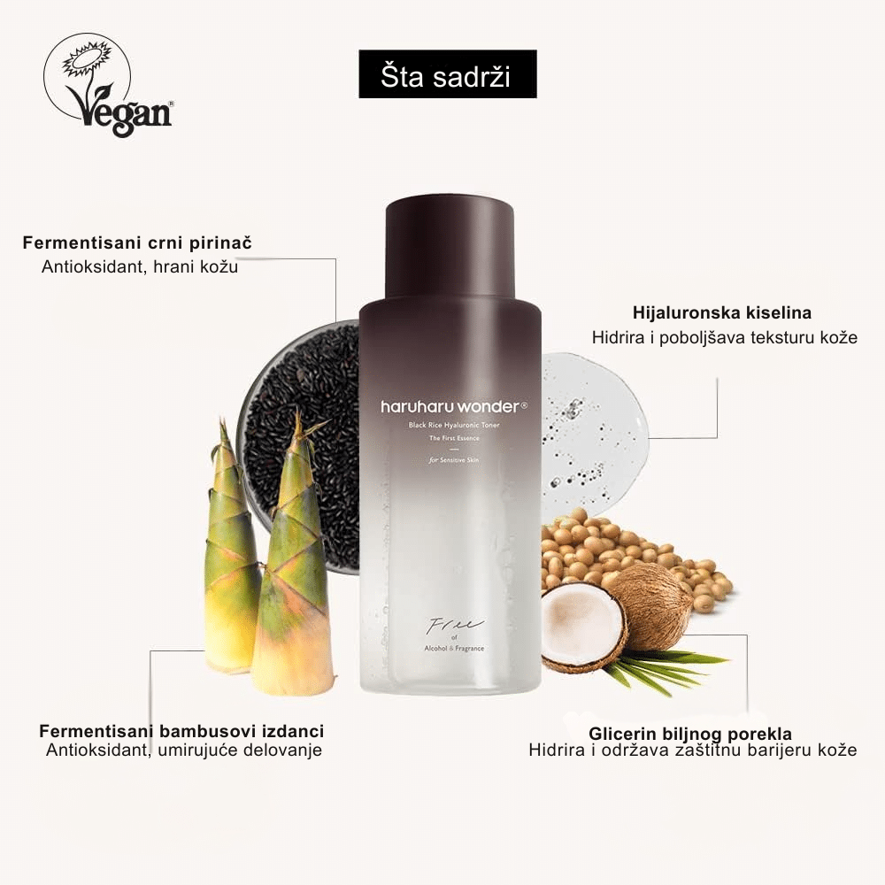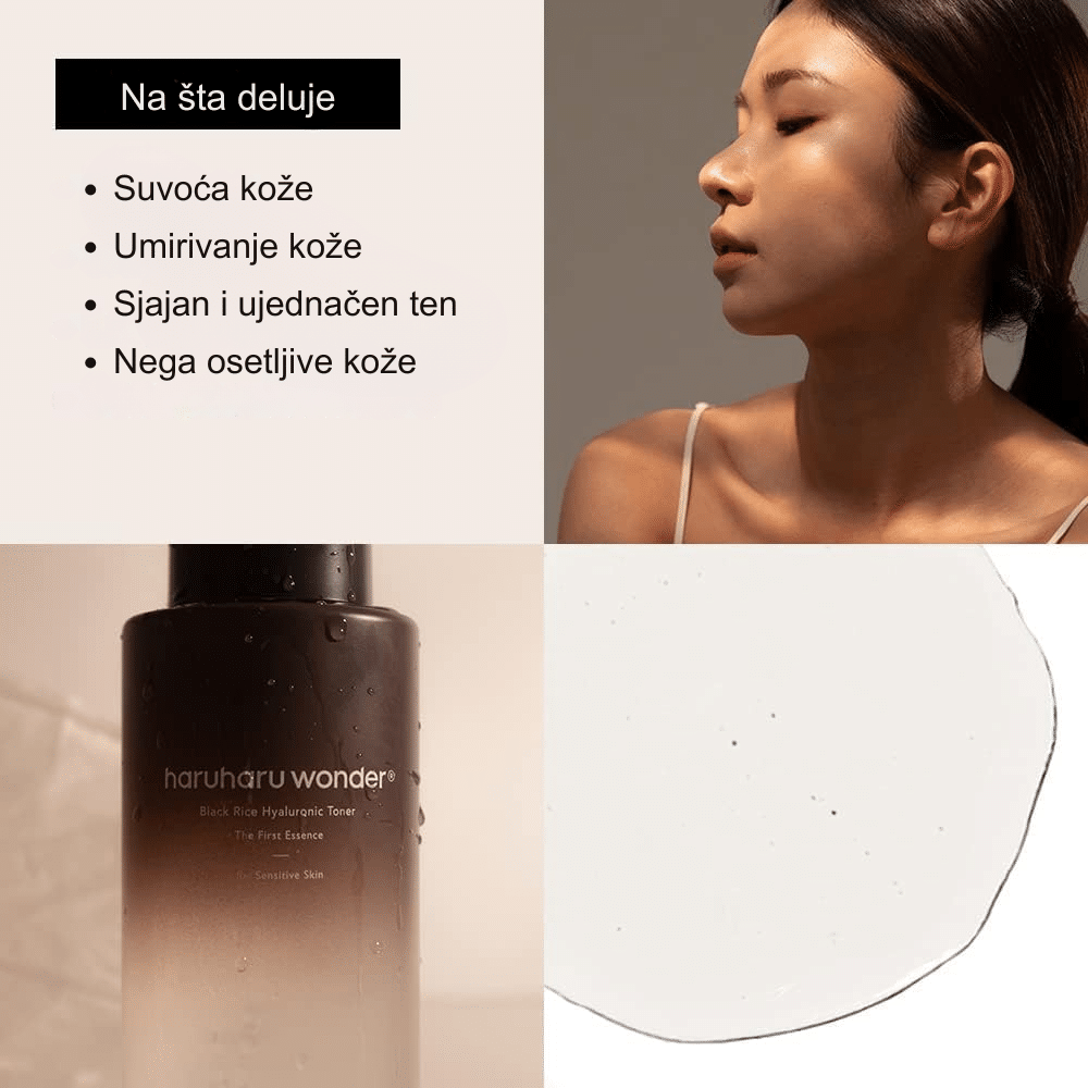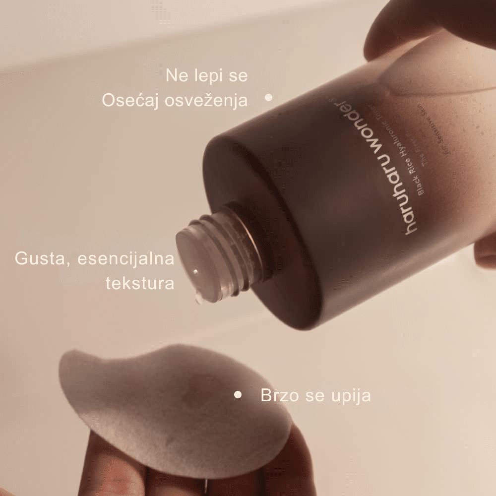 Hidratantni toner bez alkohola i mirisa sa crnim pirinčem i hijaluronskom kiselinom.