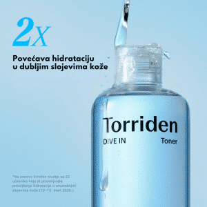 Torriden je korejski skincare brend poznat po čistim, dermatološki razvijenim formulacijama koje intenzivno hidriraju, umiruju i jačaju barijeru kože. Njihova filozofija zasniva se na maksimalnoj efikasnosti uz minimalizam, sa fokusom na visokokoncentrovane aktivne sastojke koji daju vidljive rezultate bez iritacije. Brend je posebno cenjen zbog svojih laganih tekstura koje se brzo upijaju i pružaju dugotrajnu hidrataciju. Torriden predstavlja savremeni pristup nezi kože, spajajući nauku, jednostavnost i svakodnevnu upotrebljivost.