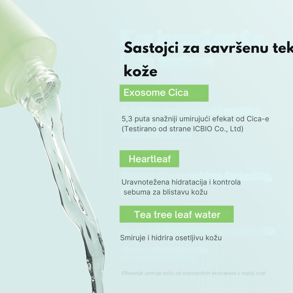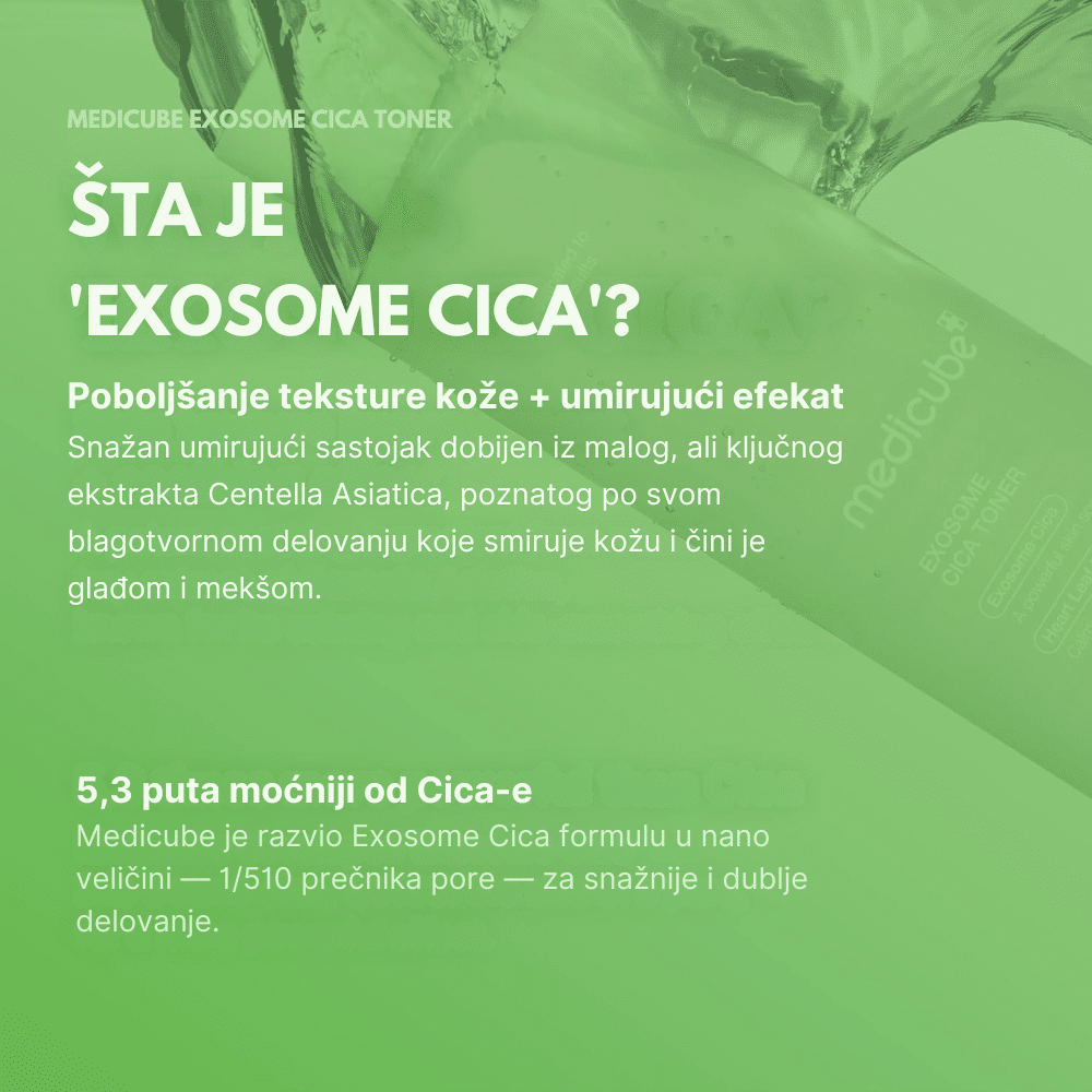 Tonik sa eksozomima i CICA kompleksom koji hidrira, umiruje i jača barijeru kože, smanjujući crvenilo i iritacije.
