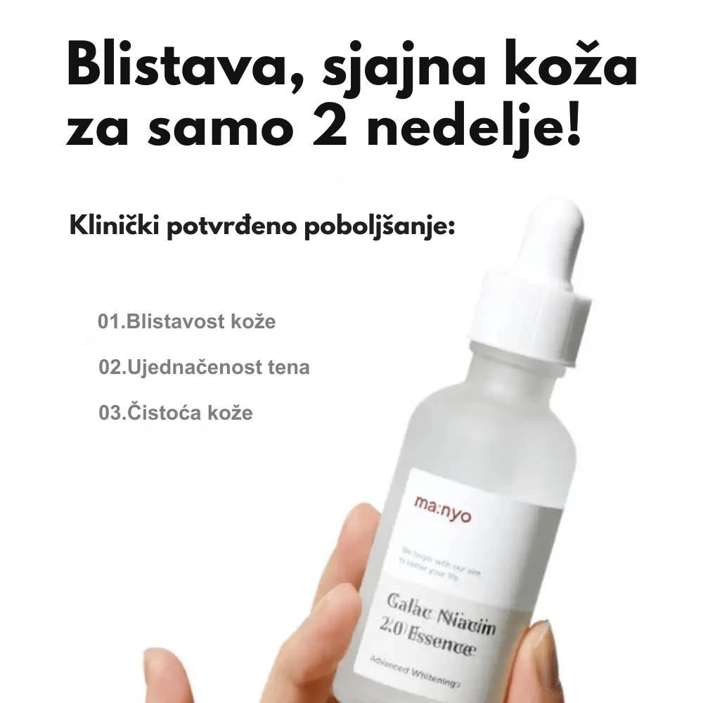 Ma:nyo Galac Niacin 2.0 Essence je esencija formulisana za ujednačavanje tena i poboljšanje teksture kože. Kombinacija galactomyces fermenta i niacinamida pomaže u smanjenju nepravilnosti i vraćanju sjaja.