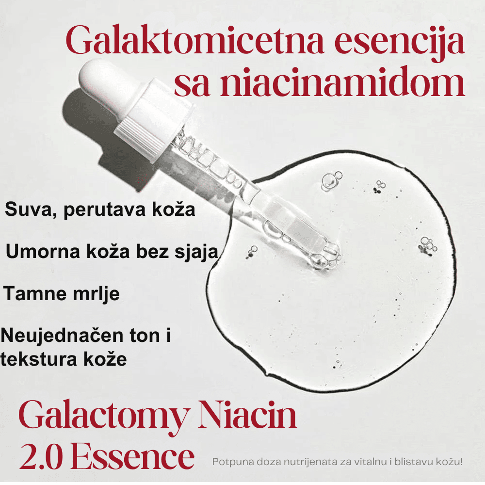 Esencija sa galactomyces fermentom i niacinamidom za ujednačen i blistav ten.