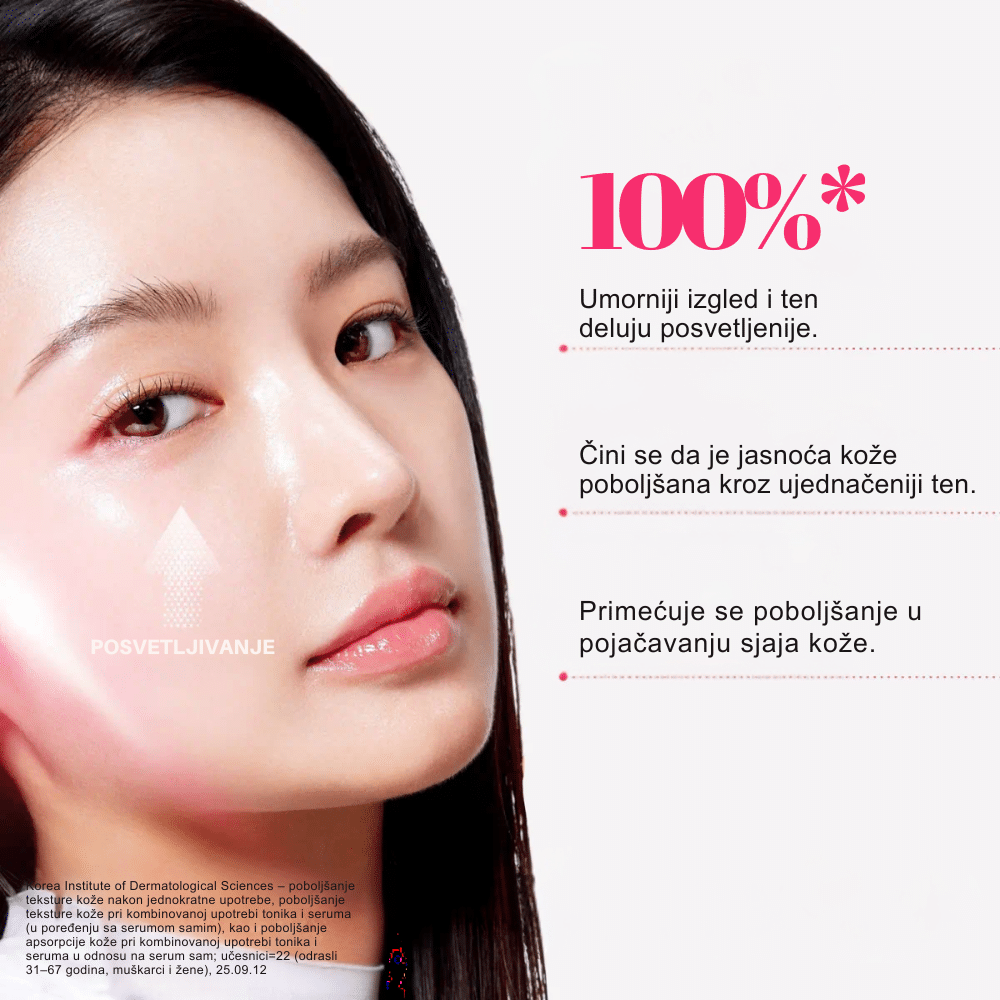 Brightening toner sa niacinamidom i TXA kiselinom. Efikasno bledi tamne fleke, ujednačava ten i sužava pore za blistav i čist izgled lica.