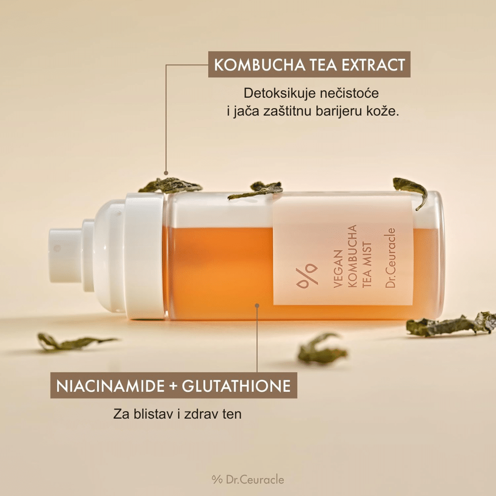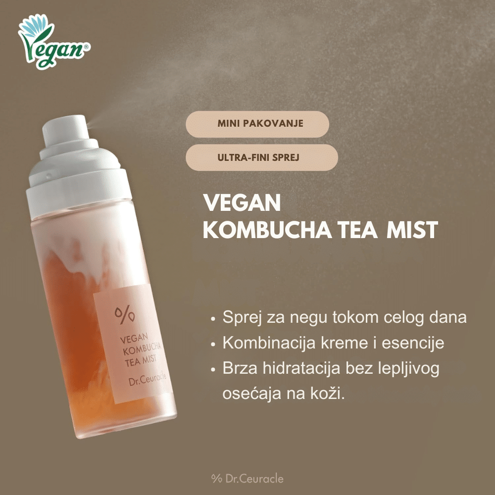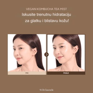 Dr.Ceuracle Vegan Kombucha Tea Mist je osvežavajući dvofazni sprej koji hidrira, revitalizuje i balansira kožu zahvaljujući jedinstvenom spoju kombucha čaja, zelenog čaja i biljnog mleka. Ova mist formula kombinuje hranljiva ulja i vodenu fazu bogatu antioksidansima, jačajući barijeru kože i štiteći je od oksidativnog stresa. Vegan i cruelty-free sastav pruža trenutan osećaj svežine, mekoće i sjaja, dok uravnotežuje pH kože i vraća joj zdrav izgled. Idealna za korišćenje pre i posle šminke ili tokom dana za brzo osveženje.