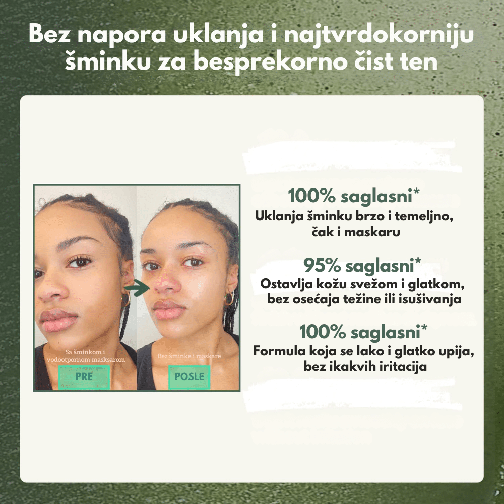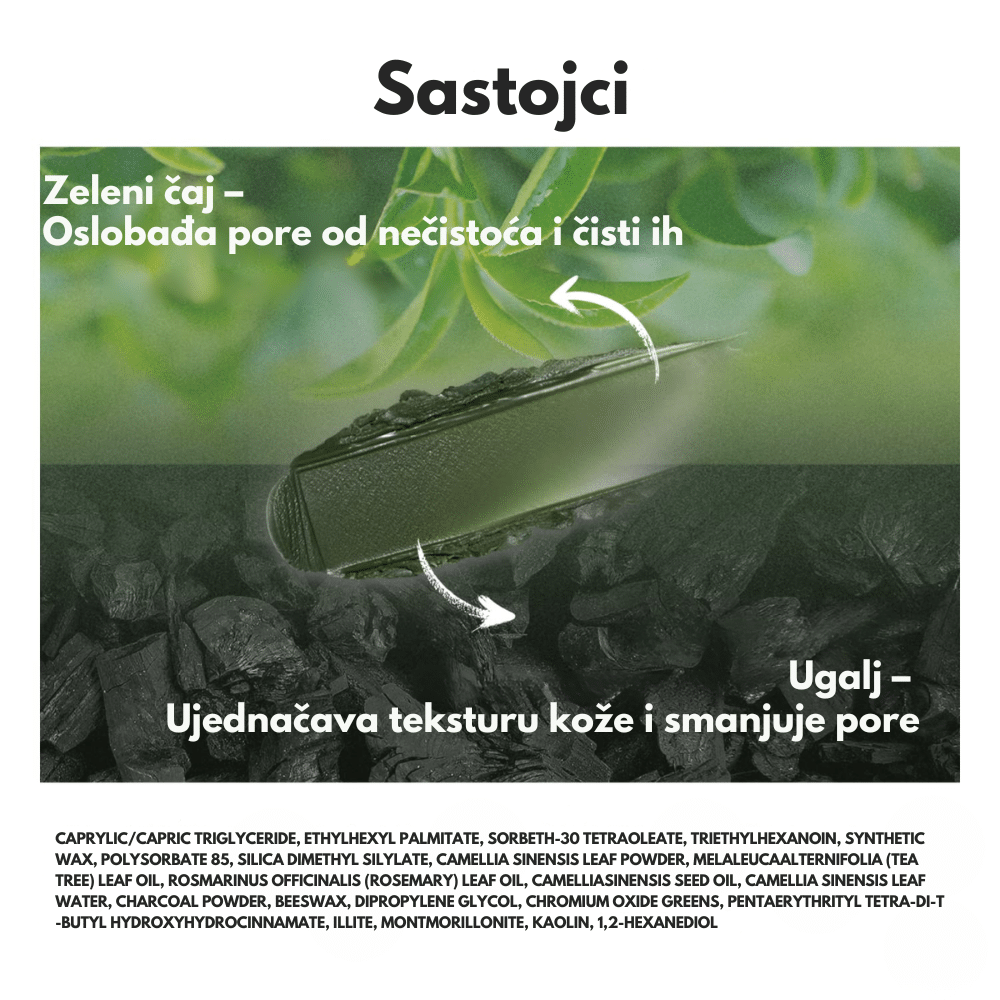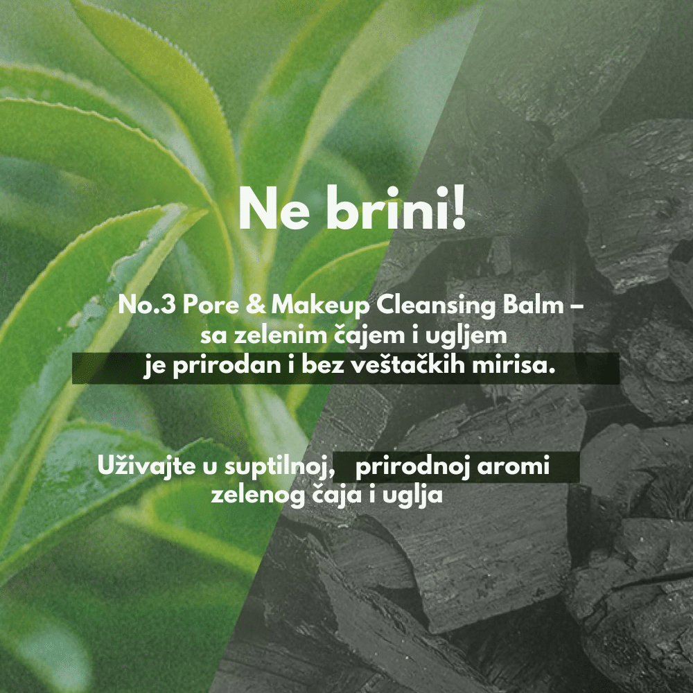 Balzam sa zelenim čajem i aktivnim ugljem koji uklanja šminku, čisti pore i osvežava kožu bez isušivanja.