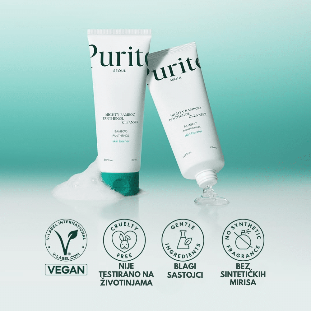 Purito Seoul Mighty Bamboo Panthenol Cleanser je clean, vegan i cruelty-free proizvod. Ovaj čistač je pogodan za sve tipove kože, uključujući i osetljivu, zahvaljujući svojoj hipoalergenskoj formuli bez štetnih sastojaka poput sulfata, parabena i veštačkih mirisa.